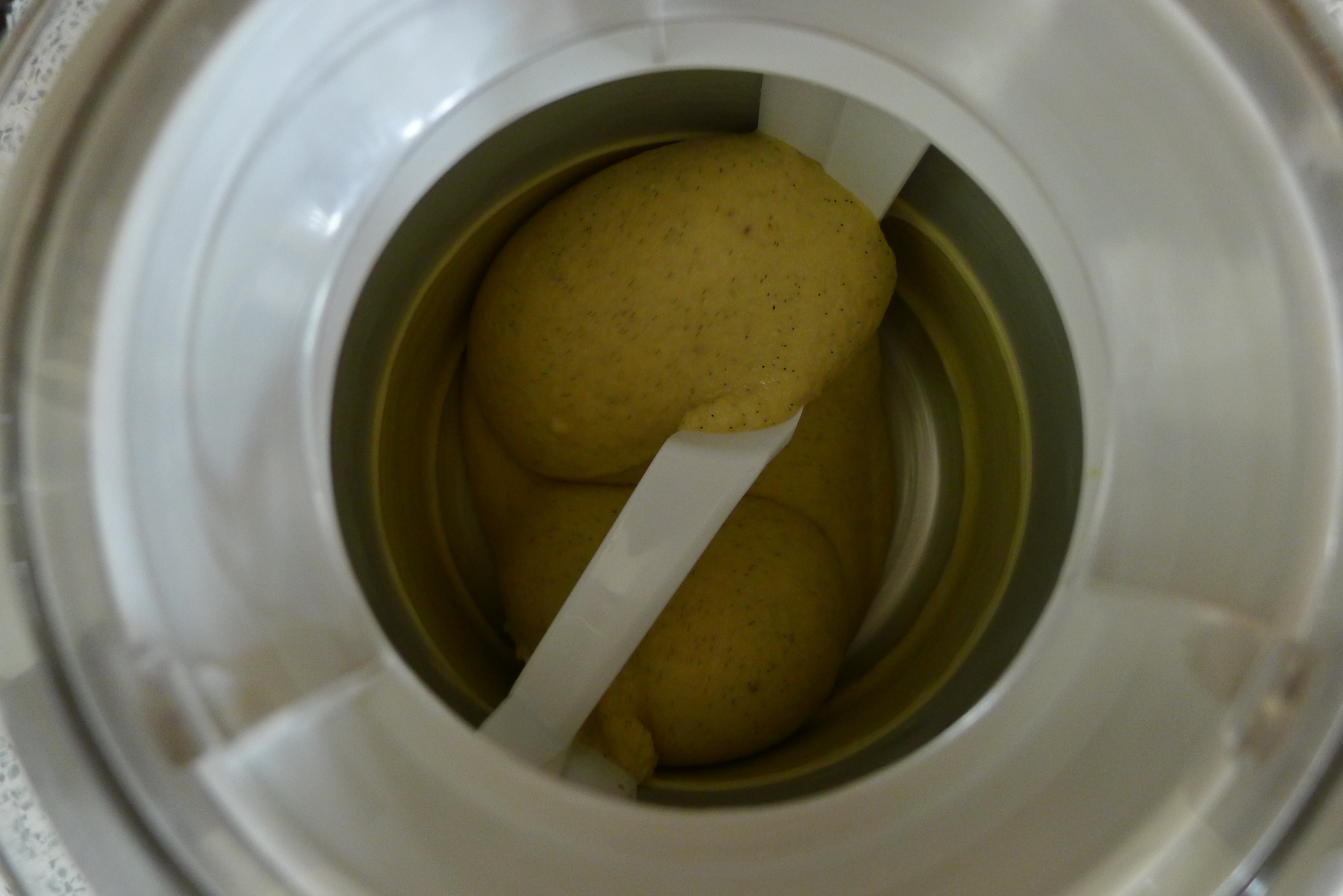 I have this big jar of vanilla beans from French Polynesia that have just been sitting in my pantry for two years! Yum. I think if I had used full fat coconut milk, the texture would have been different. I also want it to freeze up a bit more. But it was GOOD.