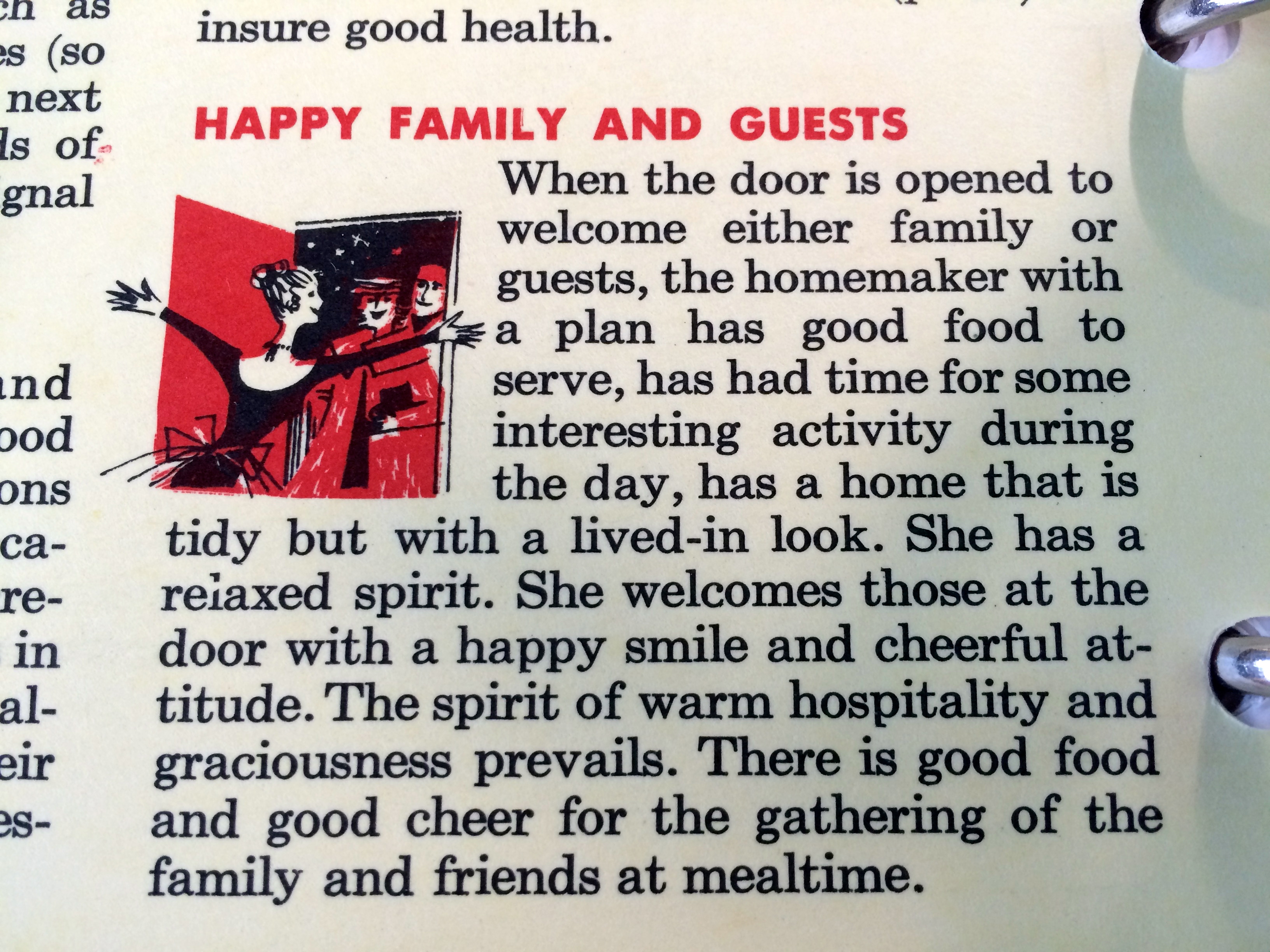 The cookbook isn’t in fabulous shape. The spine is worn and frayed, probably from lots of use over the past 6 decades. But I wasn’t looking for a collectible in perfect condition; I wanted to use the cookbook in my own kitchen! I lost myself in its musty pages for a couple of hours, peeling through each recipe and marveling at the similarities and differences between culinary thought, then and now. Being published in the 50s, there was a strong sense of the duties of a housewife. There were multiple pages containing tips on how to make required chores more tolerable (“harbor pleasant thoughts”) and entertaining seem effortless.