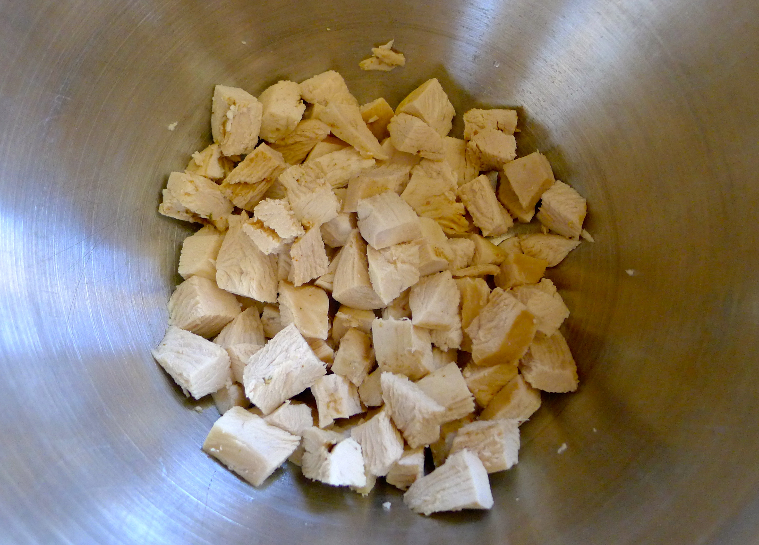 Instead of simply pouring the dressing over a salad, I decided to use it as the base for a chopped chicken salad. I chopped up a couple of poached chicken breasts. I pulled some celery, jalapeno, onion, and apple from the fridge and gave them a chop, too. And every chicken salad needs the crunch of some chopped nuts; I used pecans. I poured some of the beautiful Green Goddess dressing into the bowl and stirred it well, making sure everything was coated in the creamy goodness.