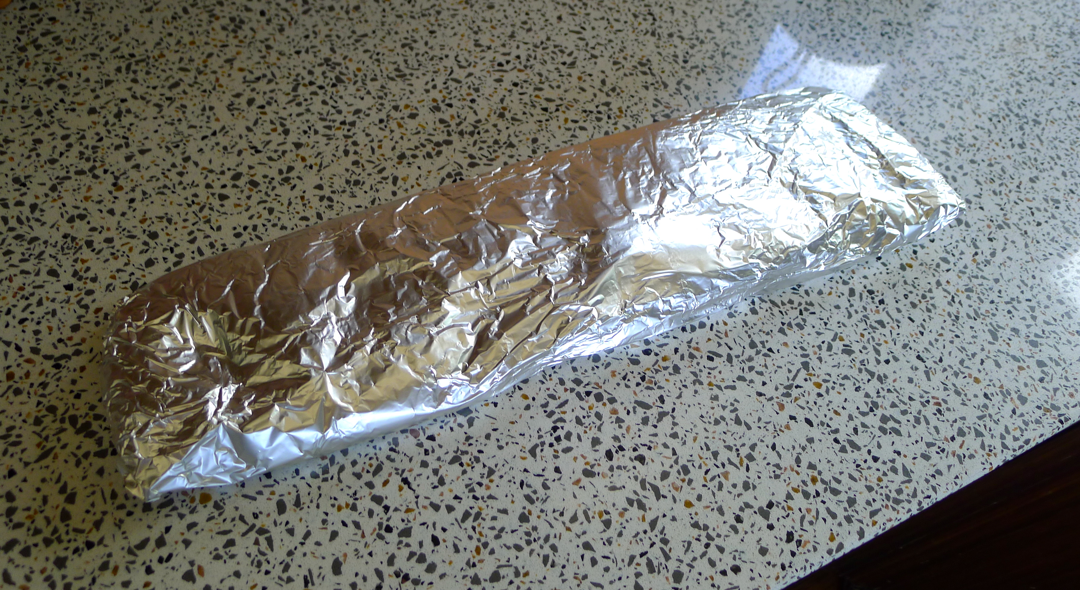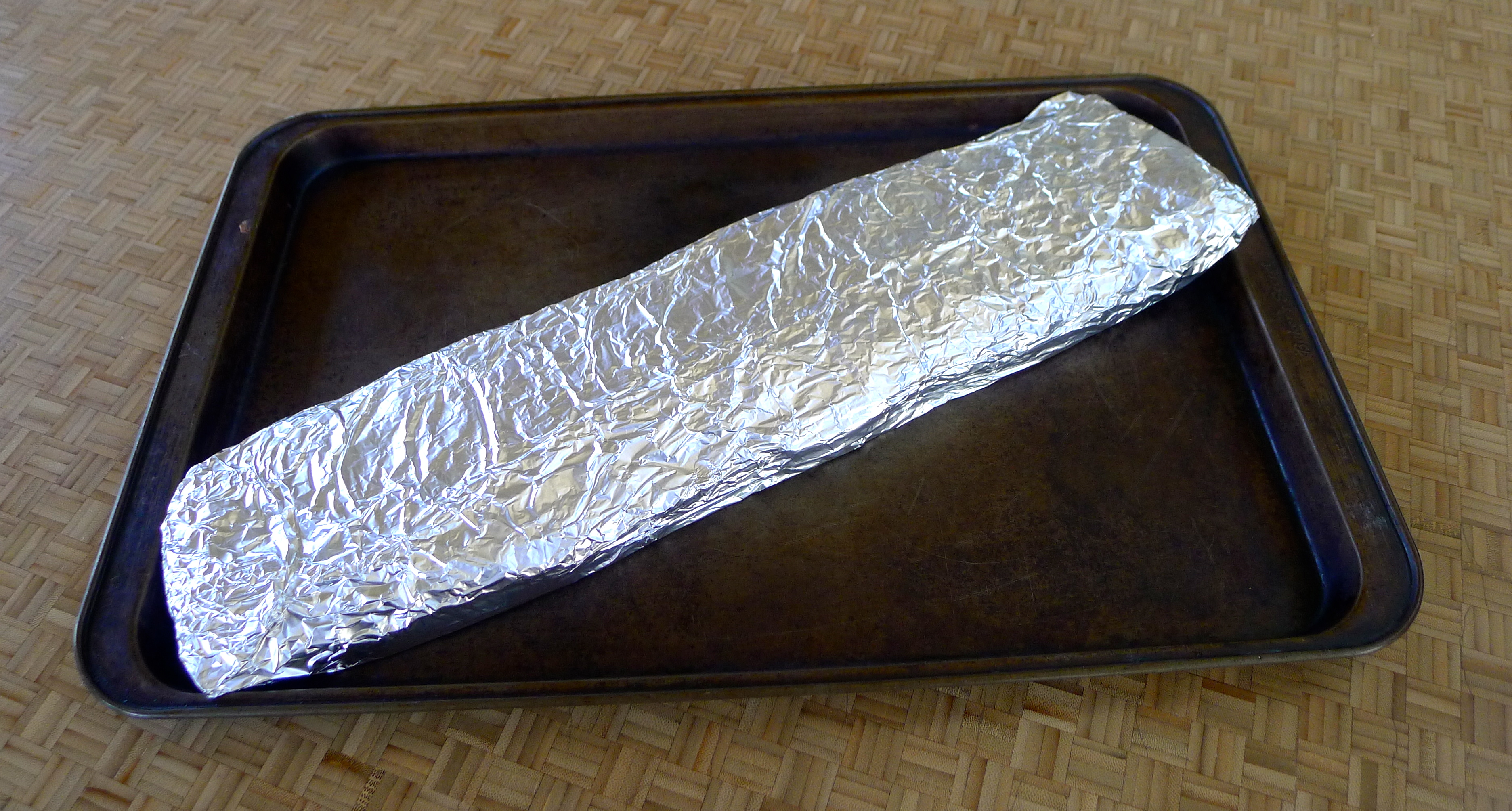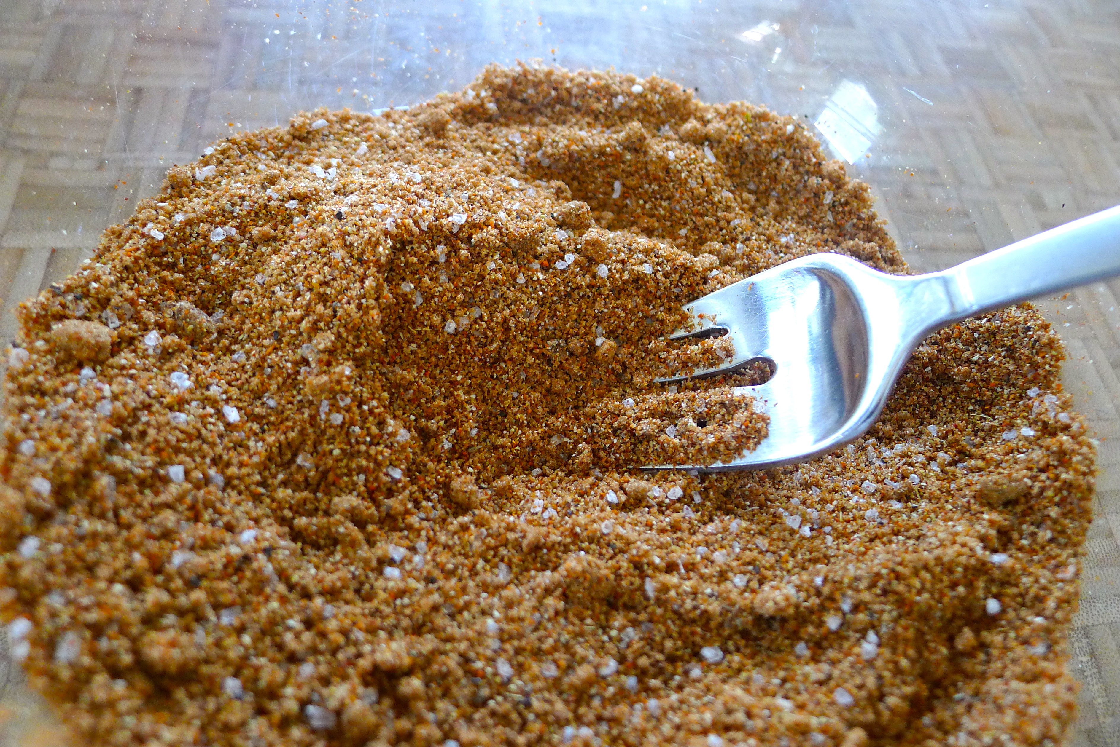 After rinsing and patting my spare ribs dry with a paper towel, I laid out some aluminum foil and placed the rack on it. I poured half of the rub onto the ribs and, well, rubbed it into the meat. I did the same on the other side with the rest of the rub, making sure to cover every last section. Then I wrapped the foil tightly and let my spicy-sweet rub do its thing overnight in the fridge.