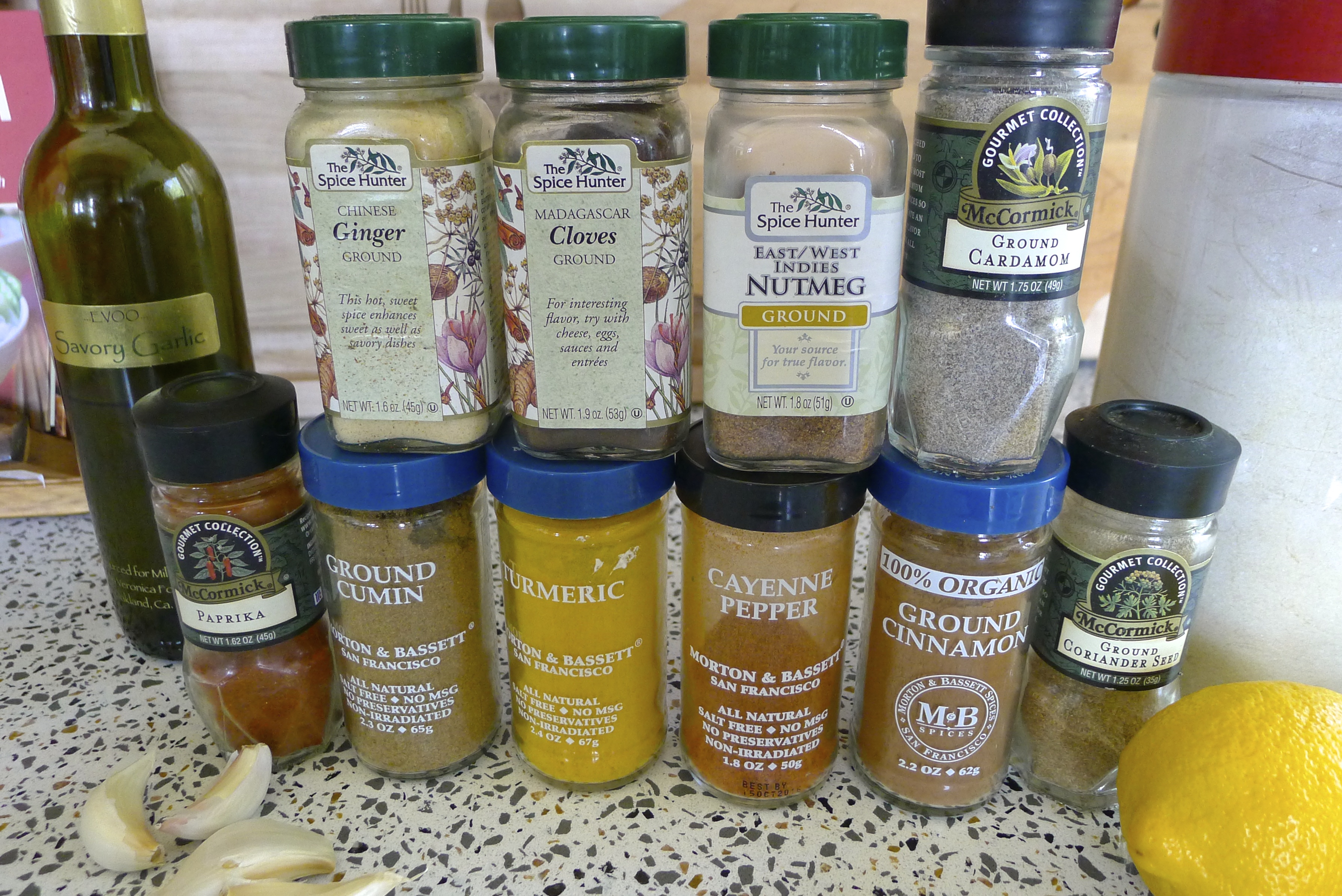 A couple of weeks ago, I got inspired to experiment and made rockin’ Moroccan grilled chicken. It was SO GOOD. Moroccan cuisine is about building layers of flavor with a ton of sweet and savory spices. Just like with the ribs we made recently, the dish involved almost every spice in my drawer. Check out this line-up! The combination hits every flavor note (warm, spicy, smoky) and, along with some oil, garlic, and sugar, resulted in a complex and delicious marinade. And just look at the vibrant colors in the bowl!