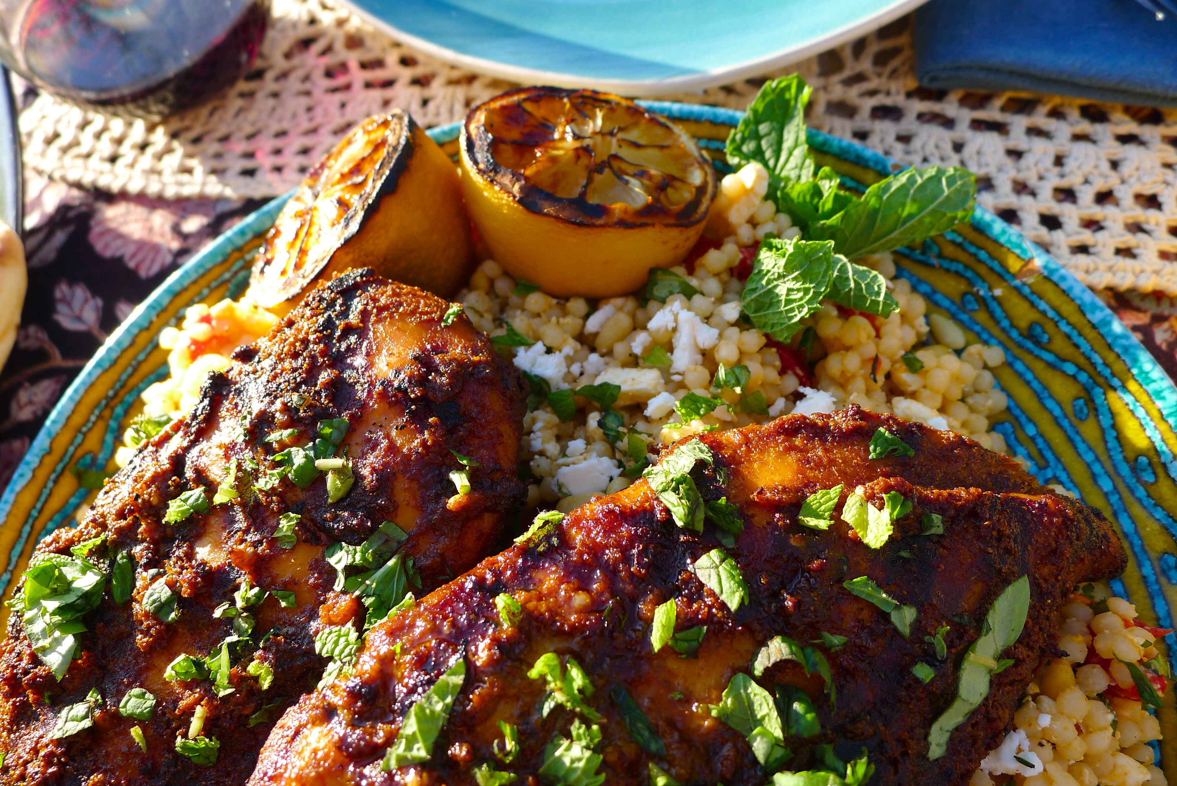 Rockin’ Moroccan Grilled Chicken with Charred Lemons