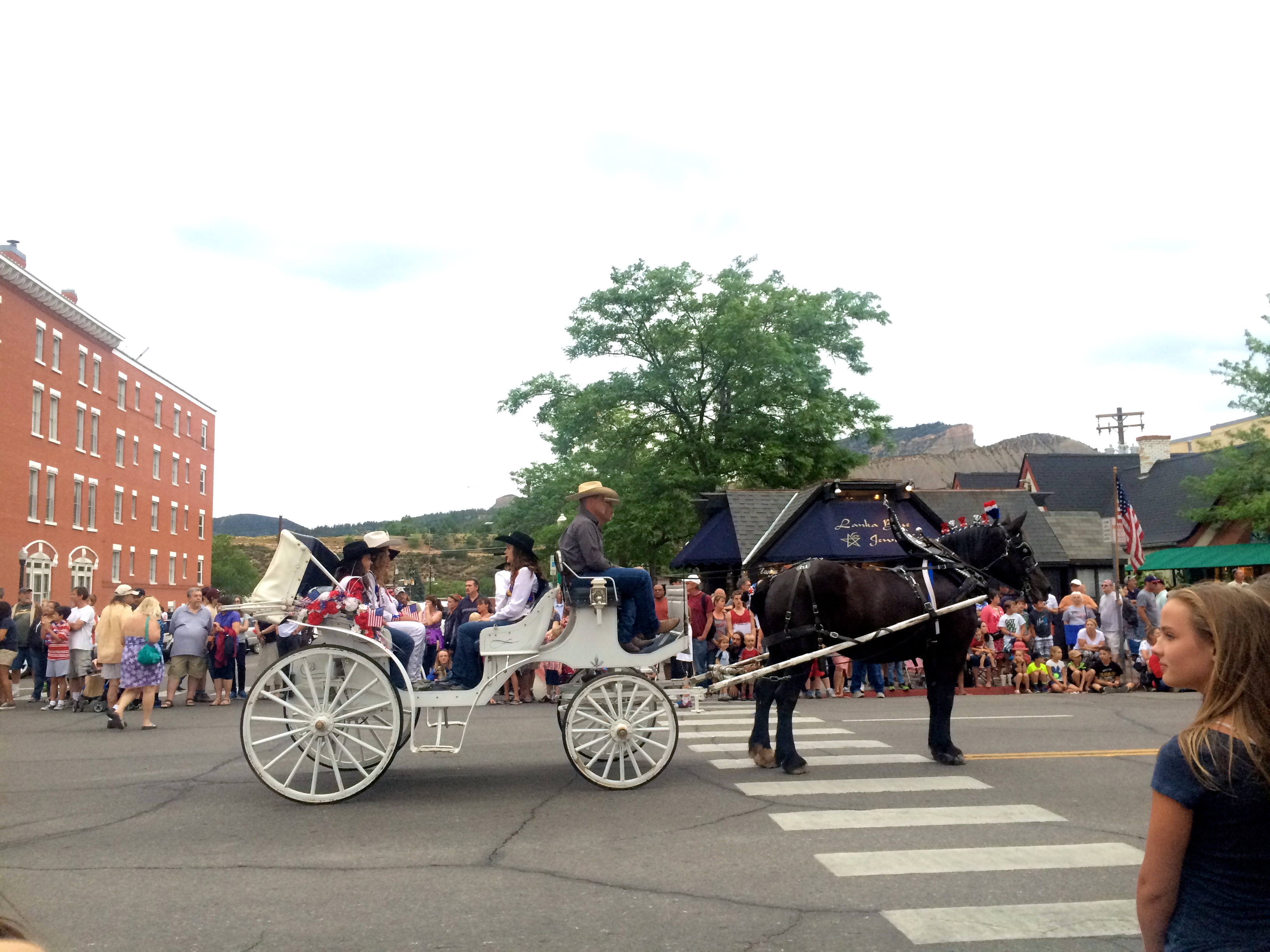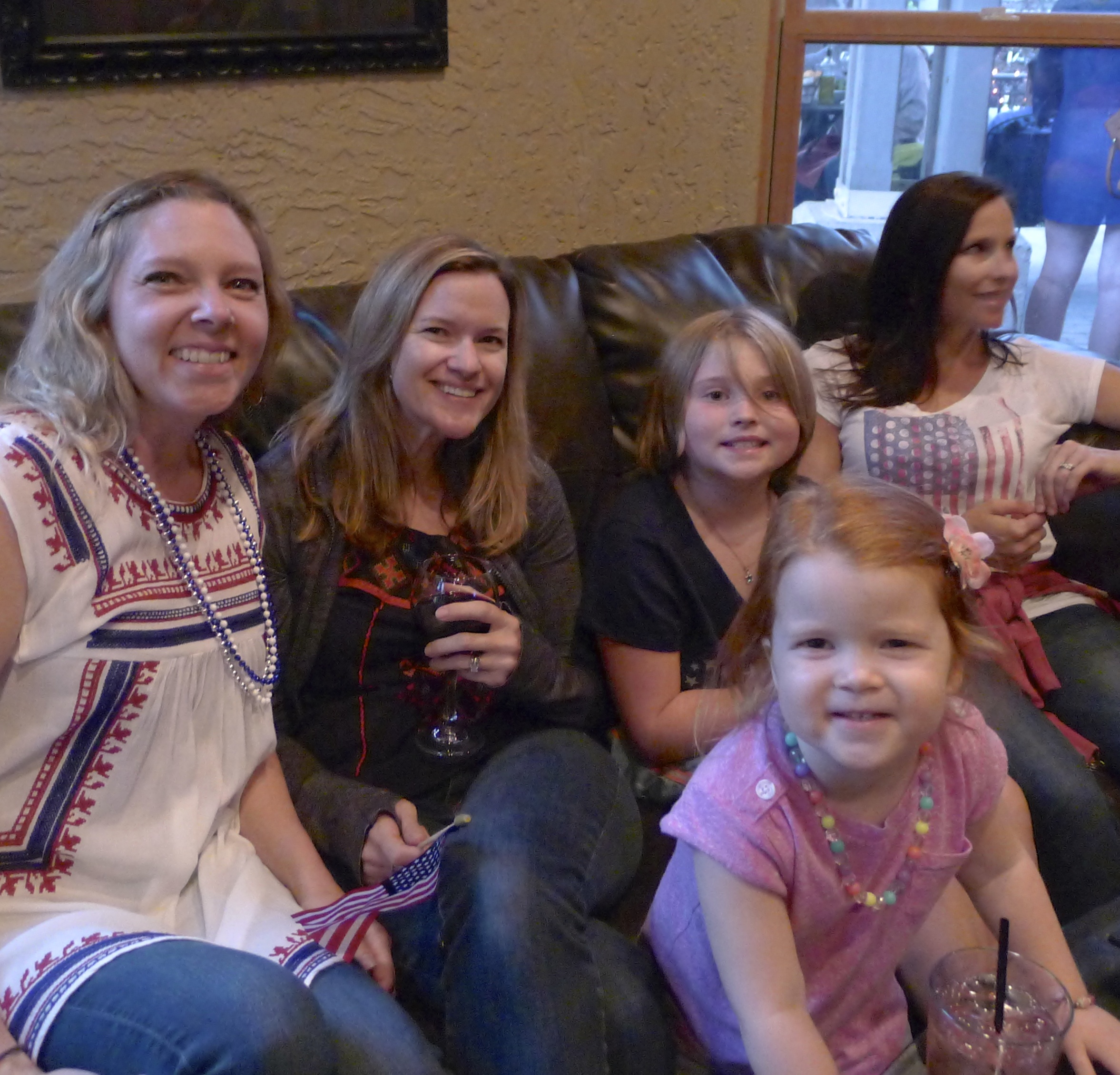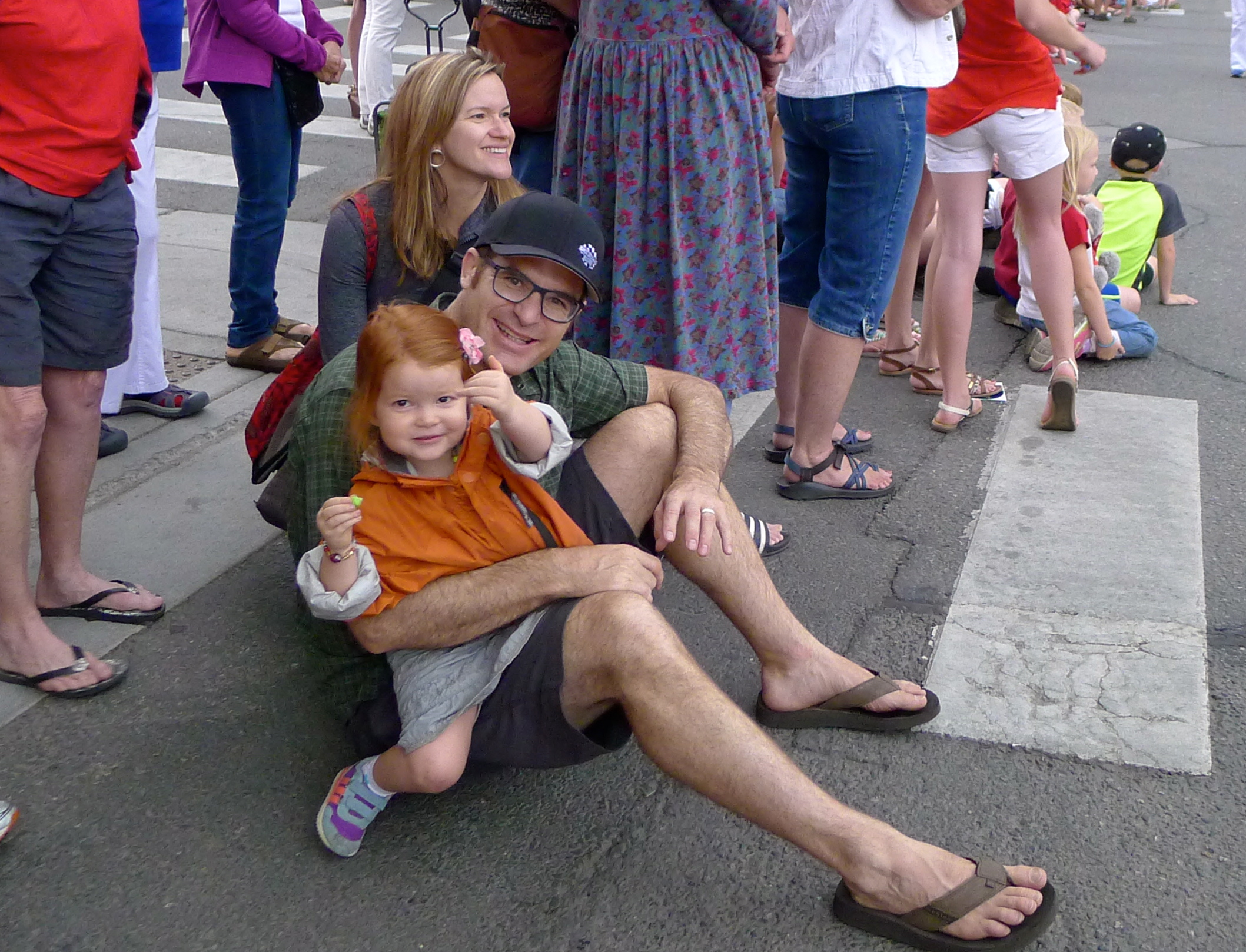 Afterward, we spent time in the gorgeous yard, sipping drinks in chairs my grandfather made while Dad grilled kebabs and corn. Delish! Later, I joined Sarah’s family for the downtown parade; there’s nothing like a small town parade on the Fourth of July. When the rain started, we ducked into a restaurant and met up with Nancy’s family. We munched some snacks and watched the kids splash around in the rain. We ended the evening with some tasty desserts for Nancy’s July 5th birthday, and I didn’t even regret missing the fireworks.
