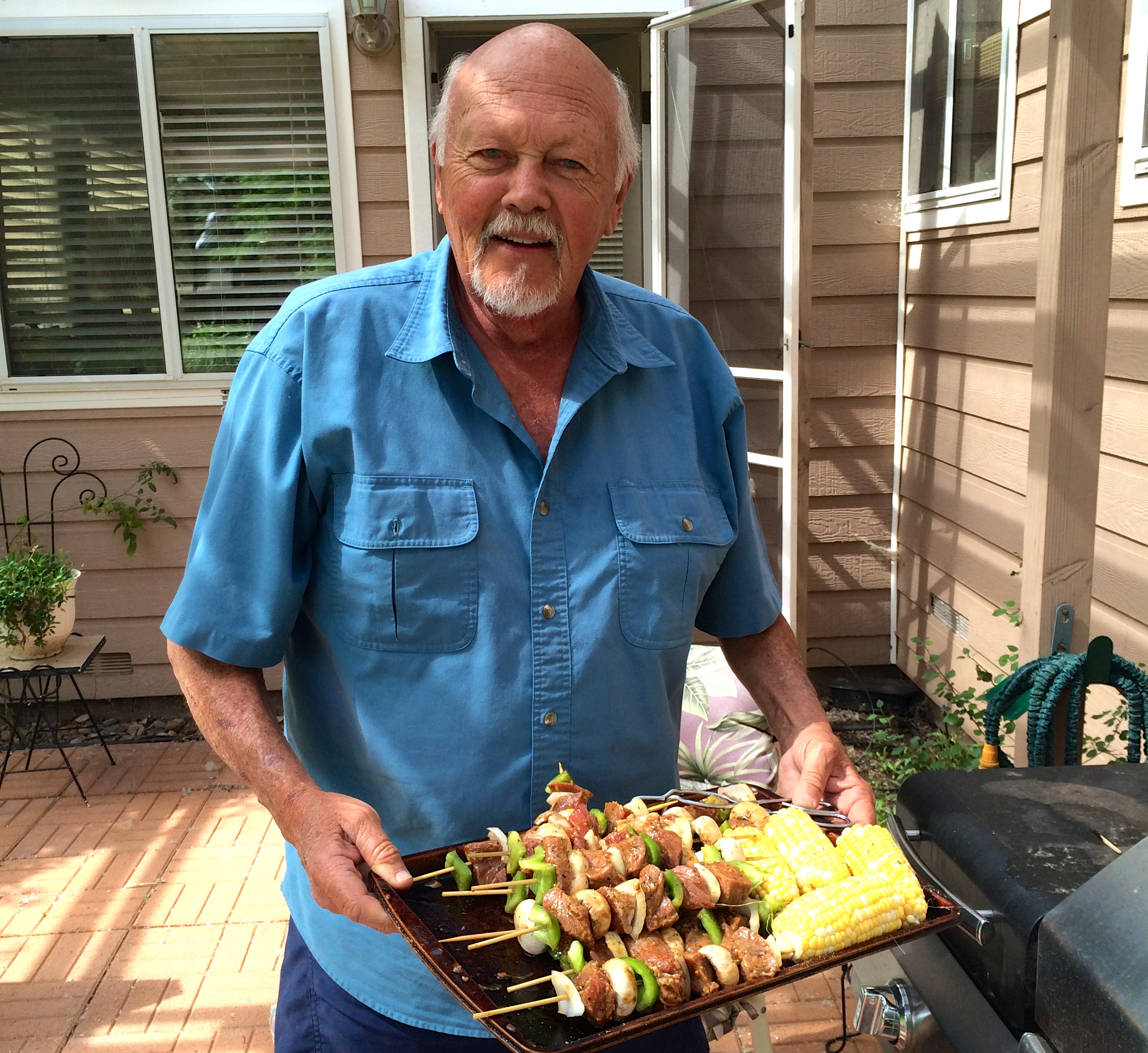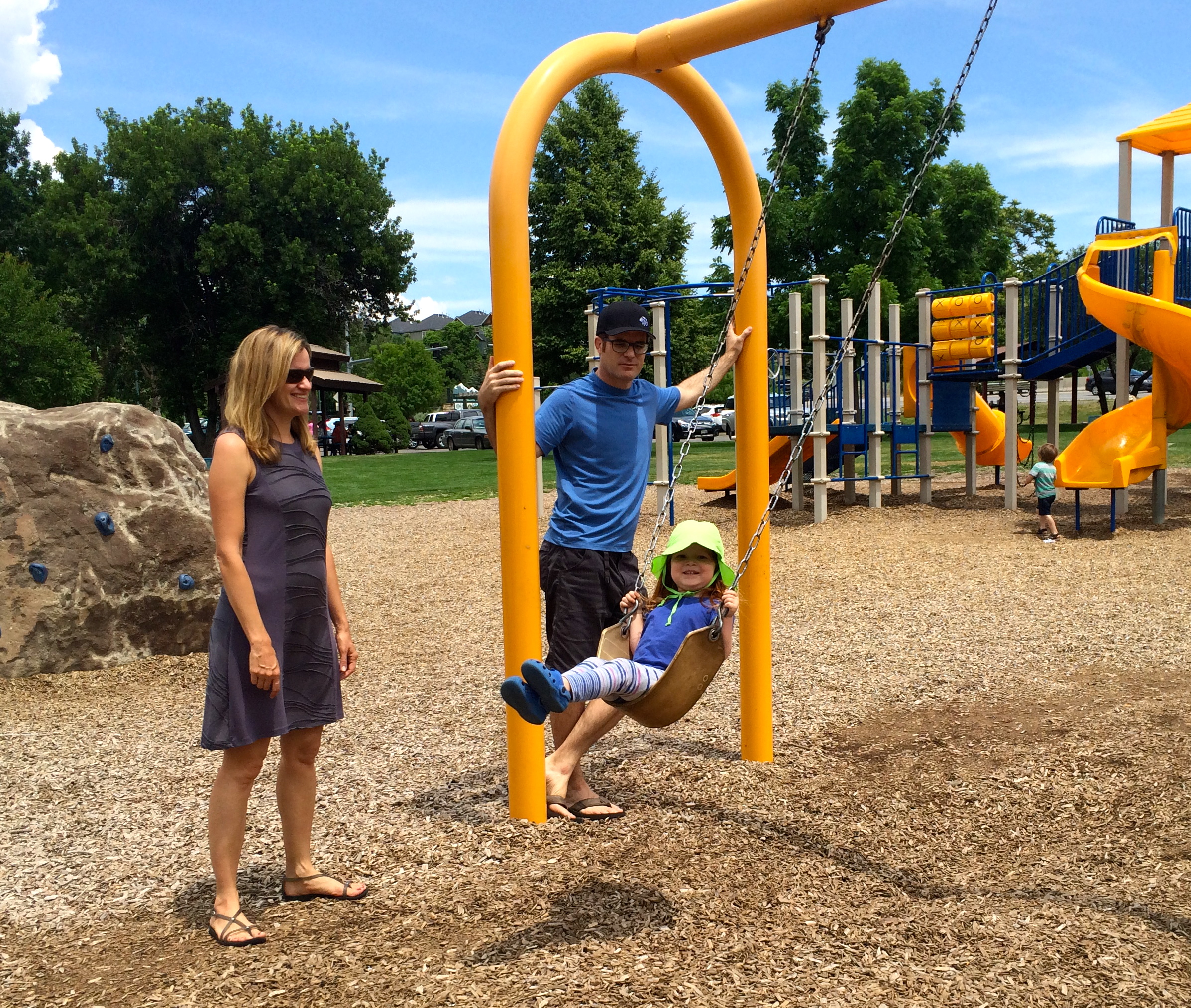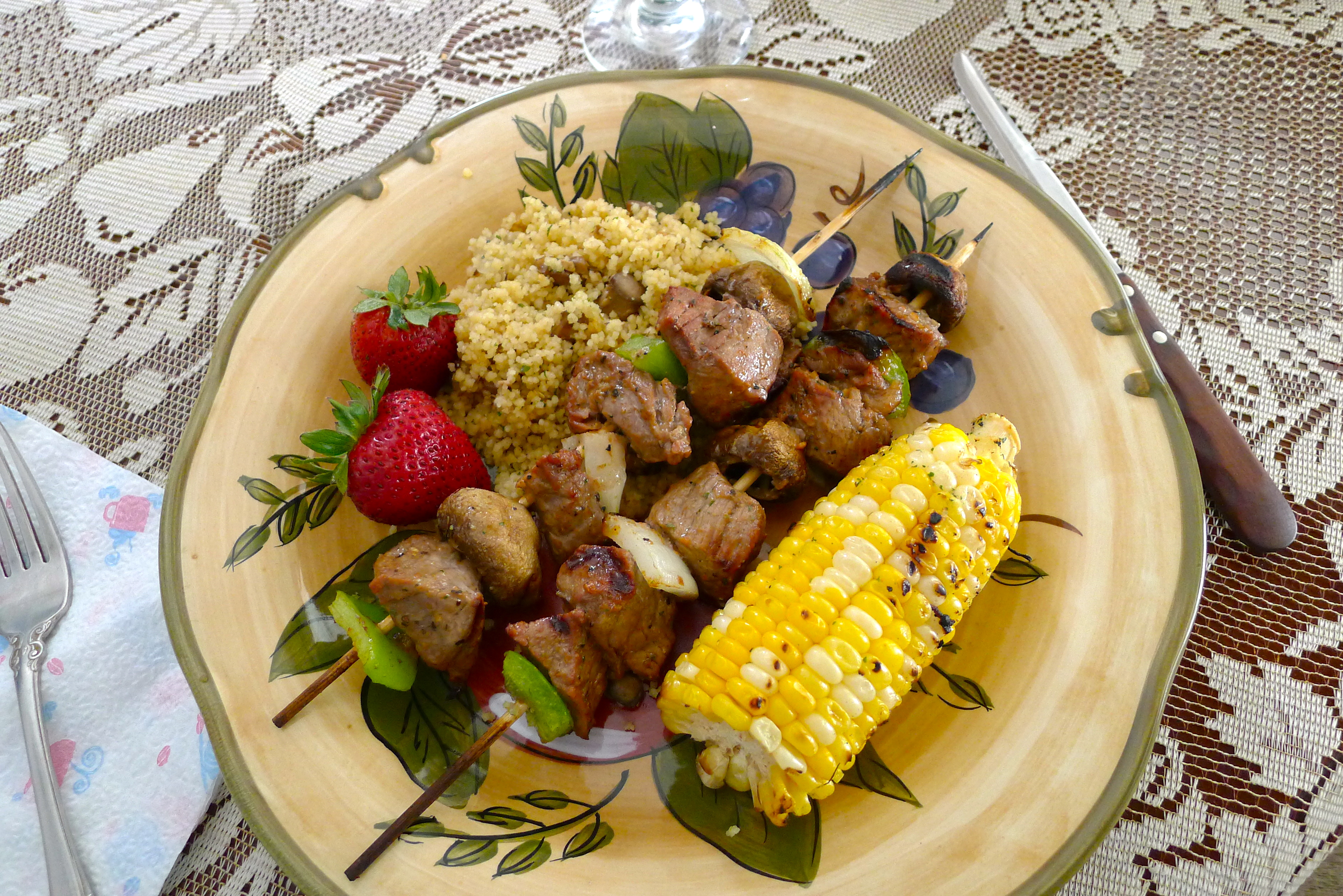 Afterward, we spent time in the gorgeous yard, sipping drinks in chairs my grandfather made while Dad grilled kebabs and corn. Delish! Later, I joined Sarah’s family for the downtown parade; there’s nothing like a small town parade on the Fourth of July. When the rain started, we ducked into a restaurant and met up with Nancy’s family. We munched some snacks and watched the kids splash around in the rain. We ended the evening with some tasty desserts for Nancy’s July 5th birthday, and I didn’t even regret missing the fireworks.