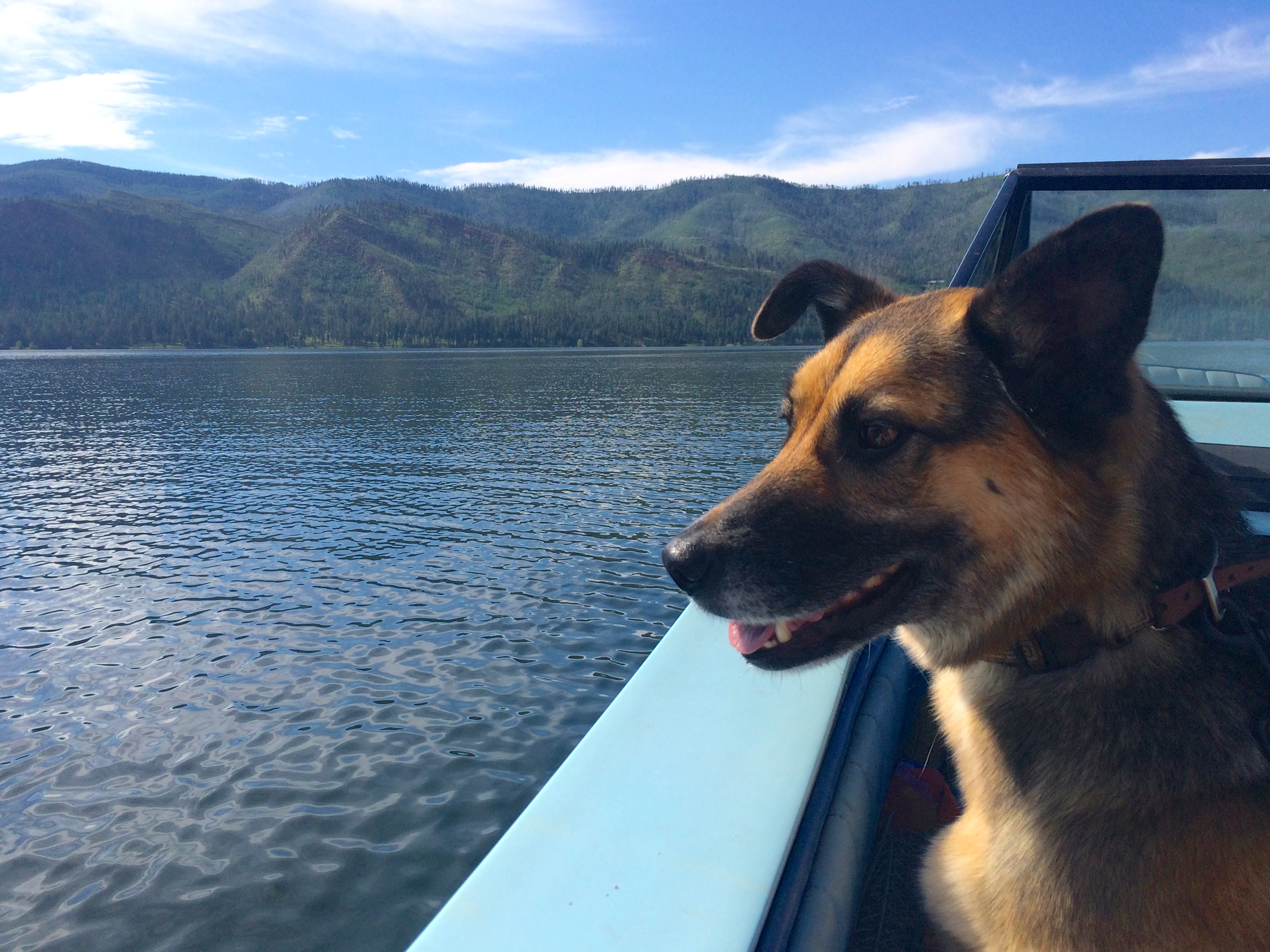 On Independence Day, we took Cholula on her first boat ride on Vallecito Lake. In 2002, a massive wildfire torched the area, but it’s rebounded beautifully. The water was glassy and perfect, the hillsides were vibrant and green, and I think Cholula liked being a boat dog!