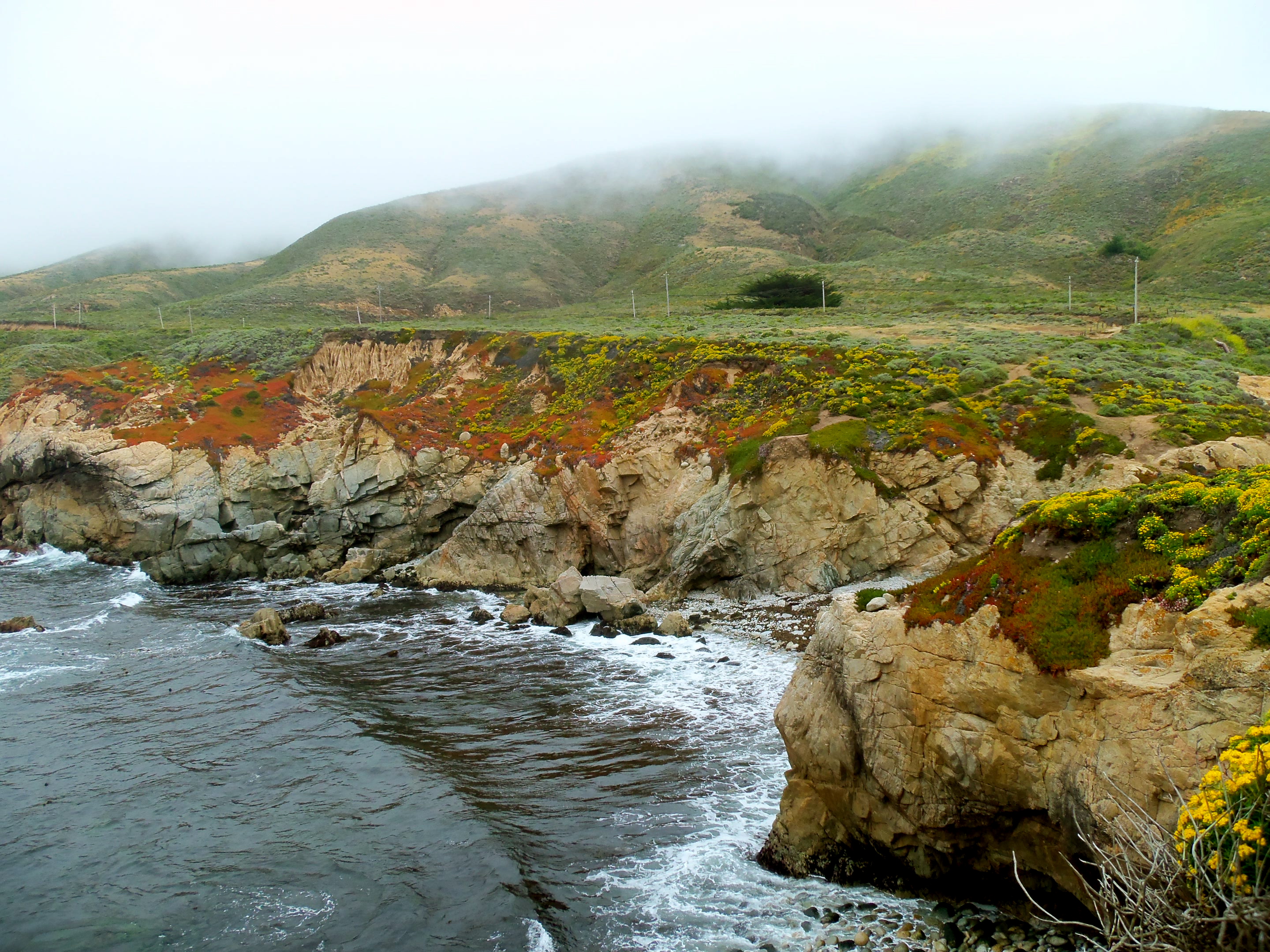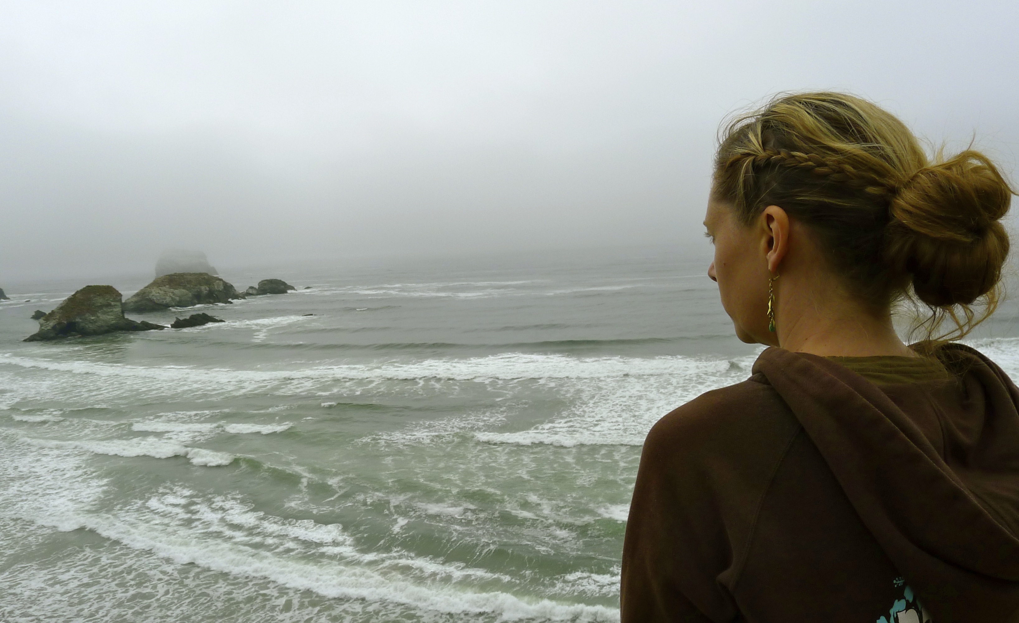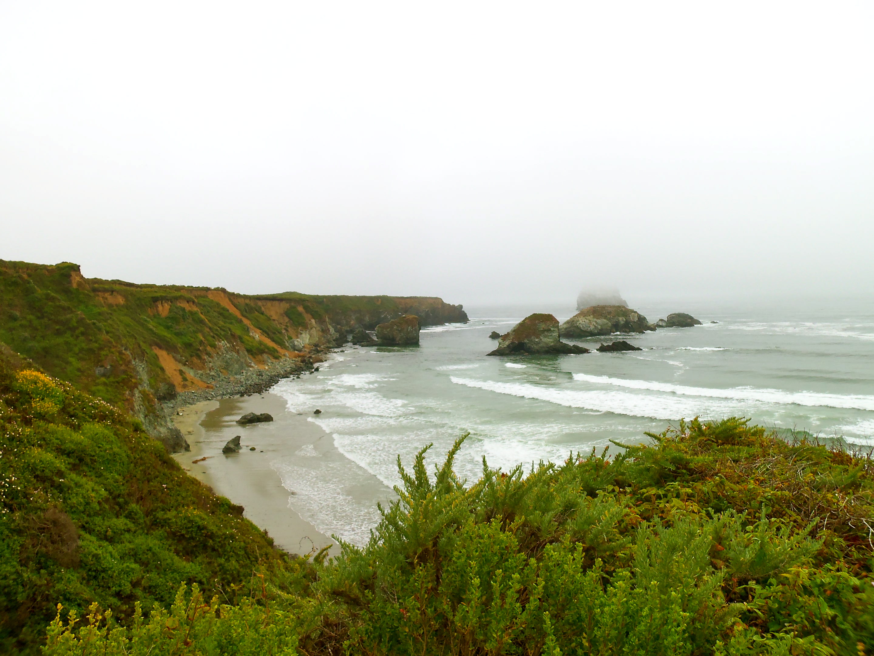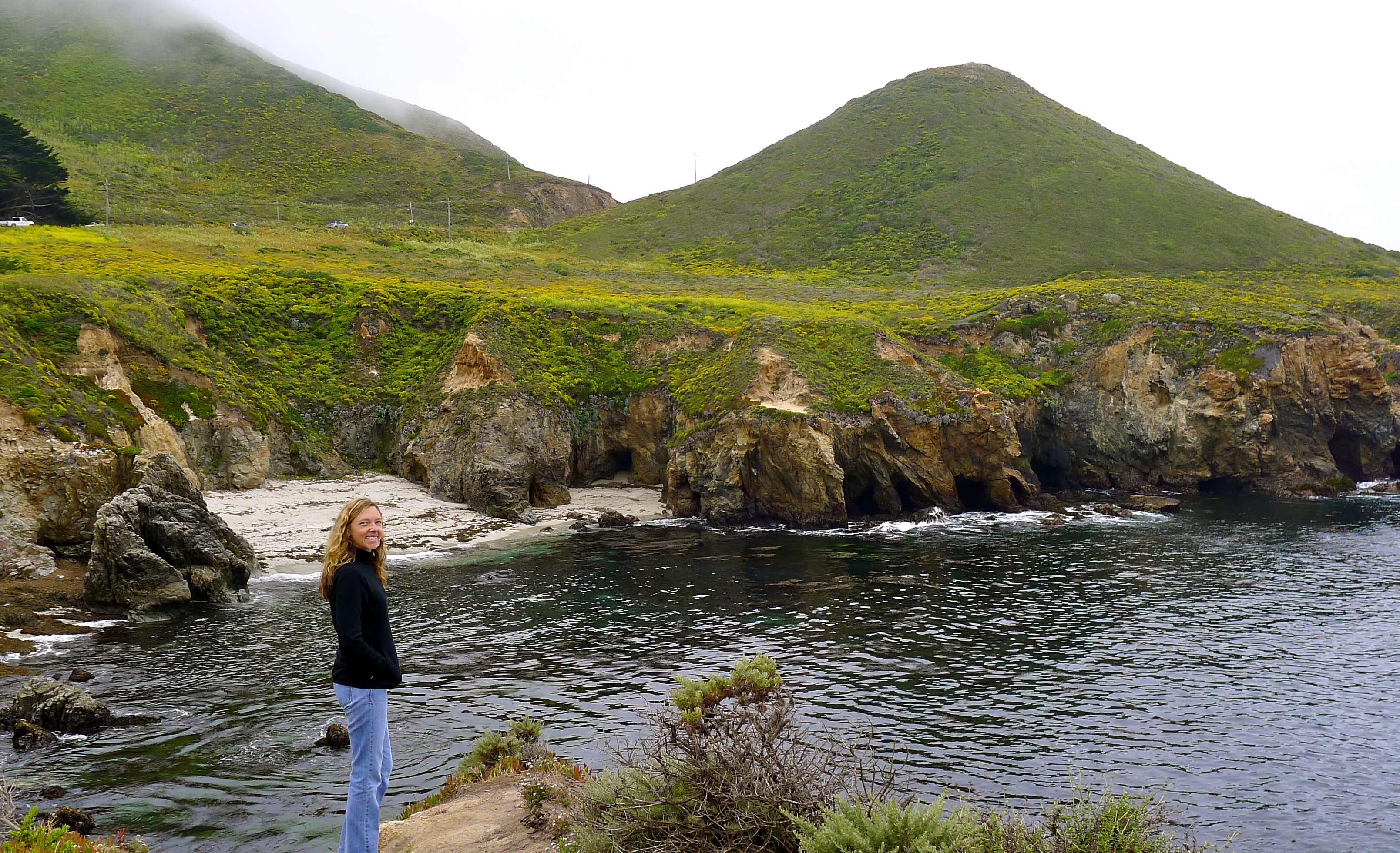 We continued north on Highway 1 the next day, stopping to explore and wishing there was less fog. We stopped in Carmel for a perfectly lovely lunch (complete with local wine), paused to watch kite surfers in the waves, and spent the afternoon wandering through the Monterey Bay Aquarium. The magical jellyfish and seahorses were our favorites. We parked our cottage-on-wheels at Floras Lake, where John planned to take wind-surfing lessons… but the wind died completely, so we left earlier than planned. We found a better spot at Costanoa Resort and spent a day hiking along the ocean.