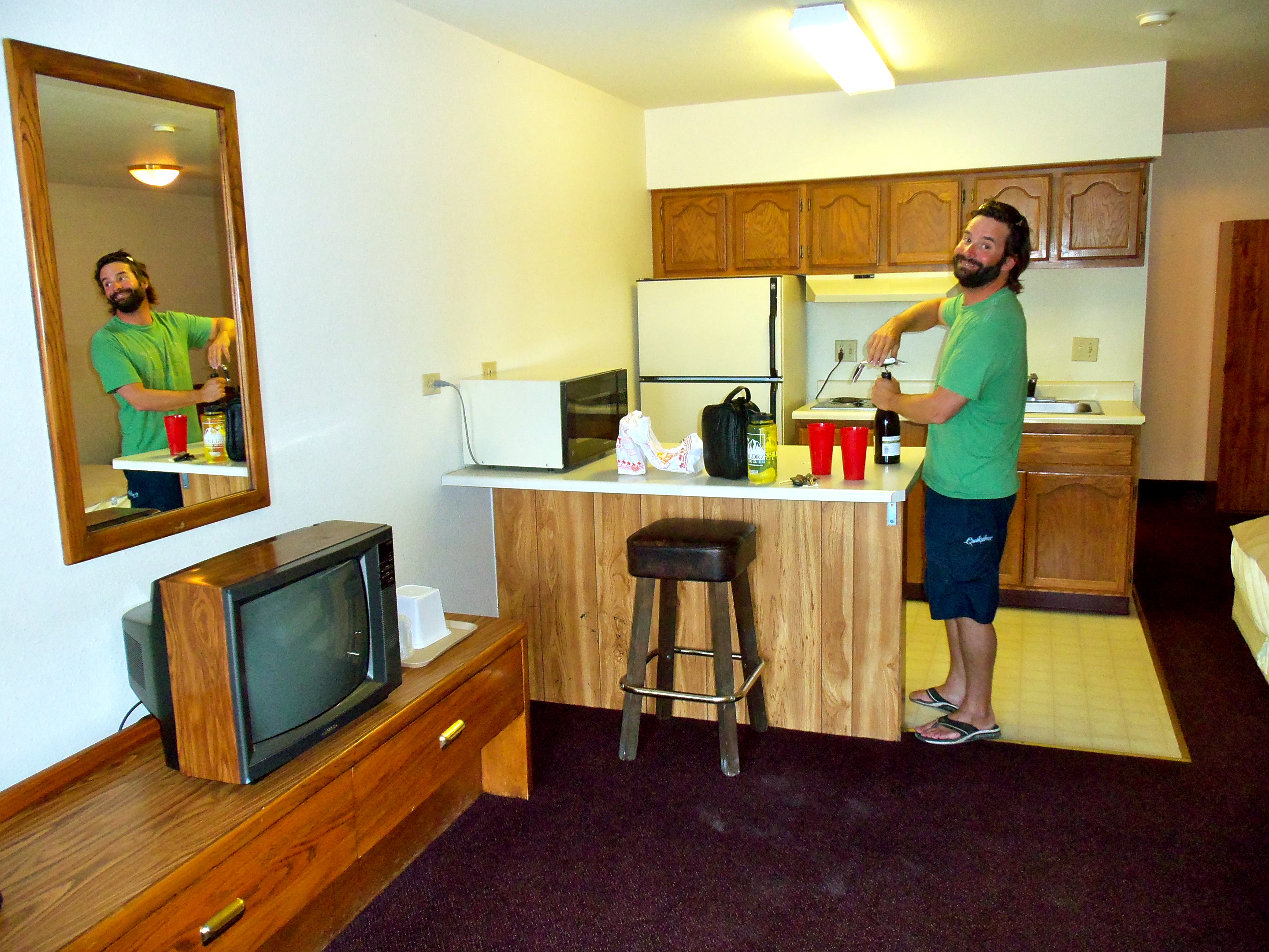 Our plan to get home was to bee-line it across the desert in 2 days. On the morning of our departure, Whit casually mentioned that Betty’s spare tire was flat. We made it through the last pretty part of the drive (Tahoe) and picked up a tasty In N’ Out burger before hitting the Nevada desert mid-day. I think I said something like, “What a horrible place to get stuck- I hope we don’t get a flat.” BOOM! It was as if I brought the blow-out upon us. We hovered in the shade from Betty on the side of the highway in the middle of nowhere until a gentleman from AAA helped us enough to limp into the desolate town of Lovelock, Nevada. After nixing just about every motel in town as we drove by, we settled on one that didn’t have ex-convicts drinking 40s of beer on broken folding chairs in the parking lot. John opened a bottle of wine in our circa 1981 motel room and we laughed at our situation… what else could we do? We dined on plastic plates at the local casino (slots only), had fixed Betty properly in the morning, and headed home. (Read more about the mis-adventure here.)