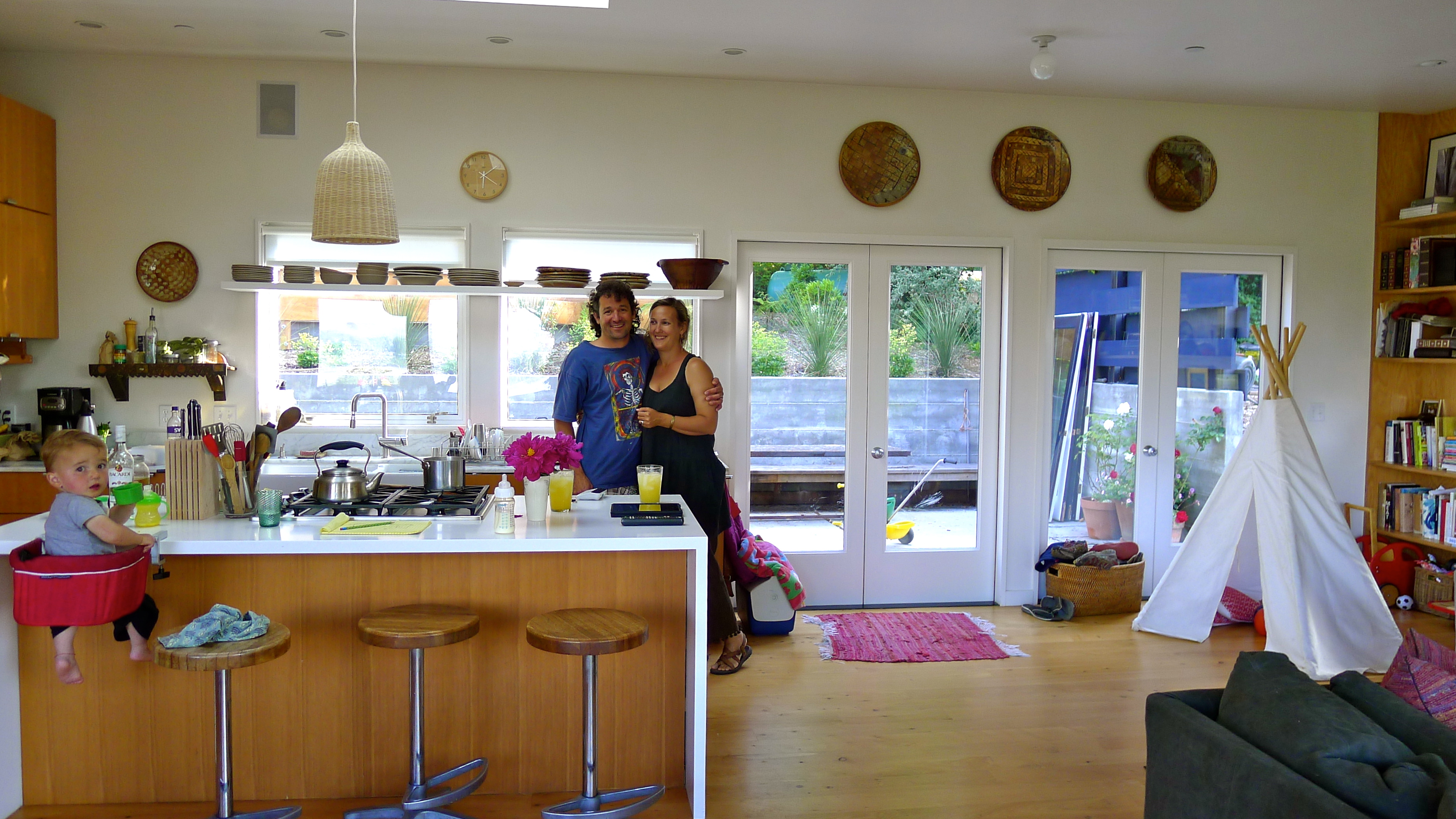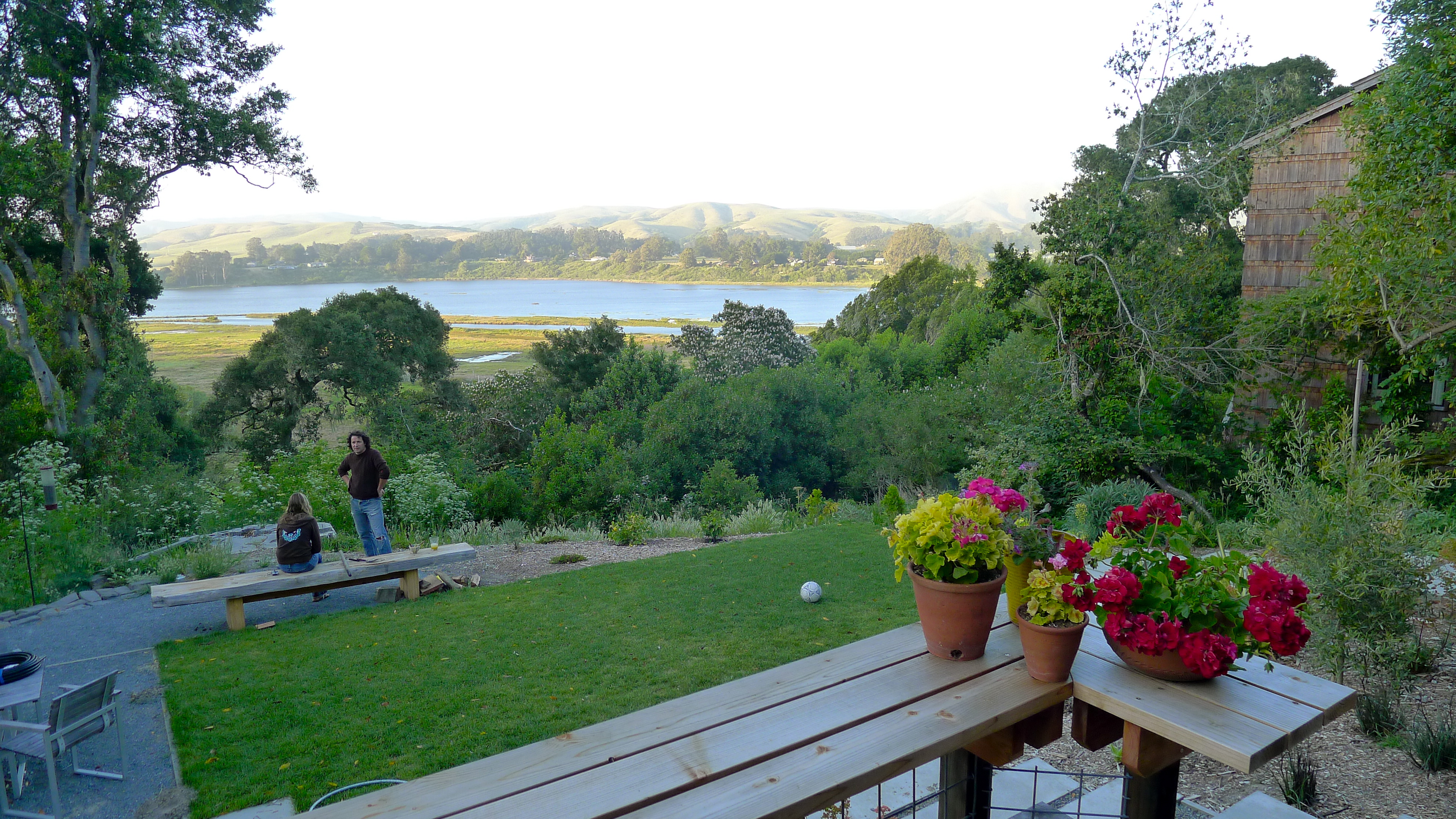The next day, after stopping at Half Moon Bay for a picnic lunch, we drove Betty over the Golden Gate bridge and through the narrow city streets of San Francisco. We met up with our old friend, Whit, and joined him and his beautiful family at their home in Point Reyes in West Marin for a few days. Whit and Lazuli are one of those couples that John and I hope to emulate, and their boys (Ozzie and Huck) adore John. Their home overlooks Tomales Bay and Betty tucked right into their driveway for our stay.
