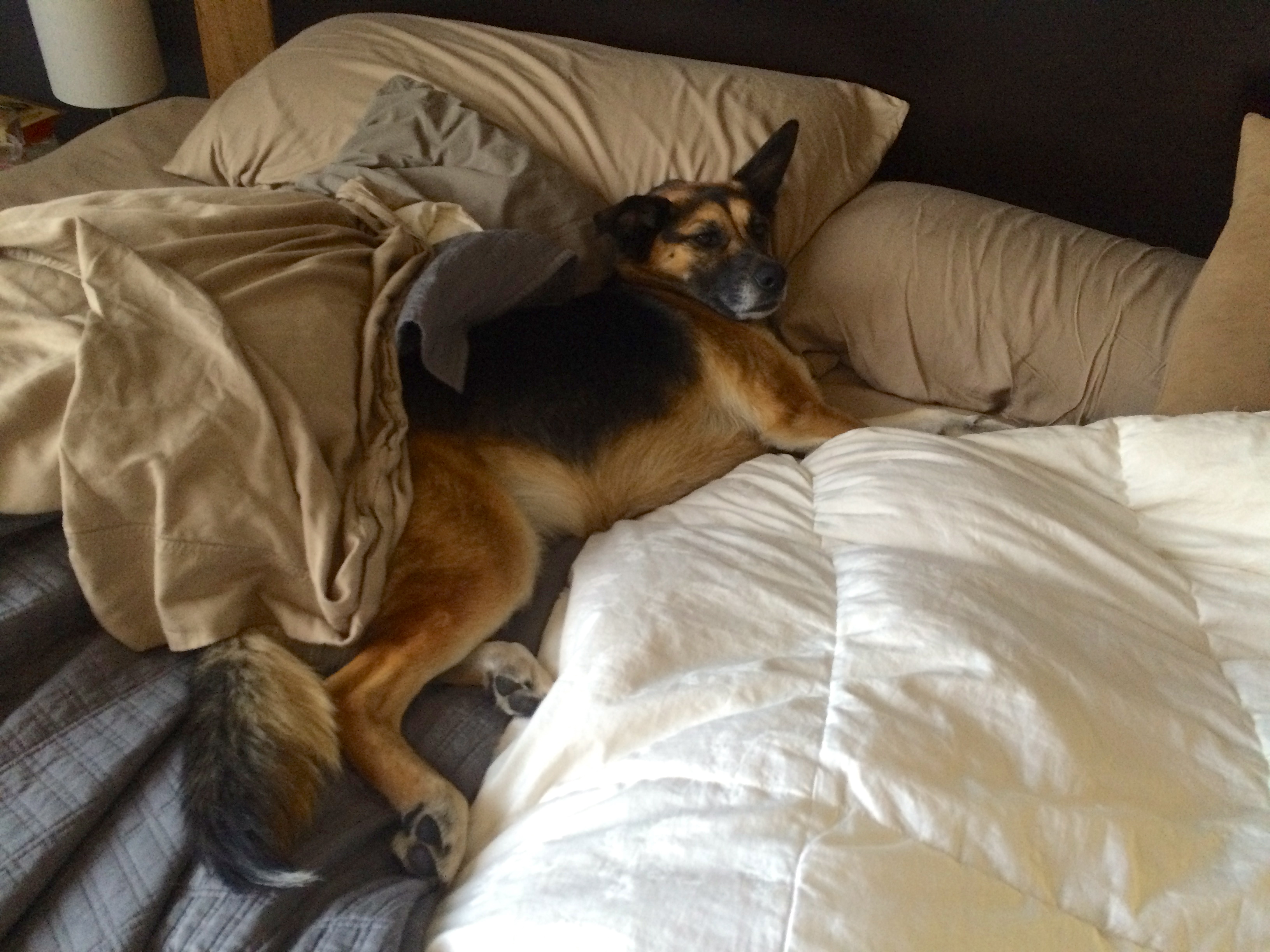 Cholula’s immediate reaction when my prenatal yoga video begins. ZZZZZZZ