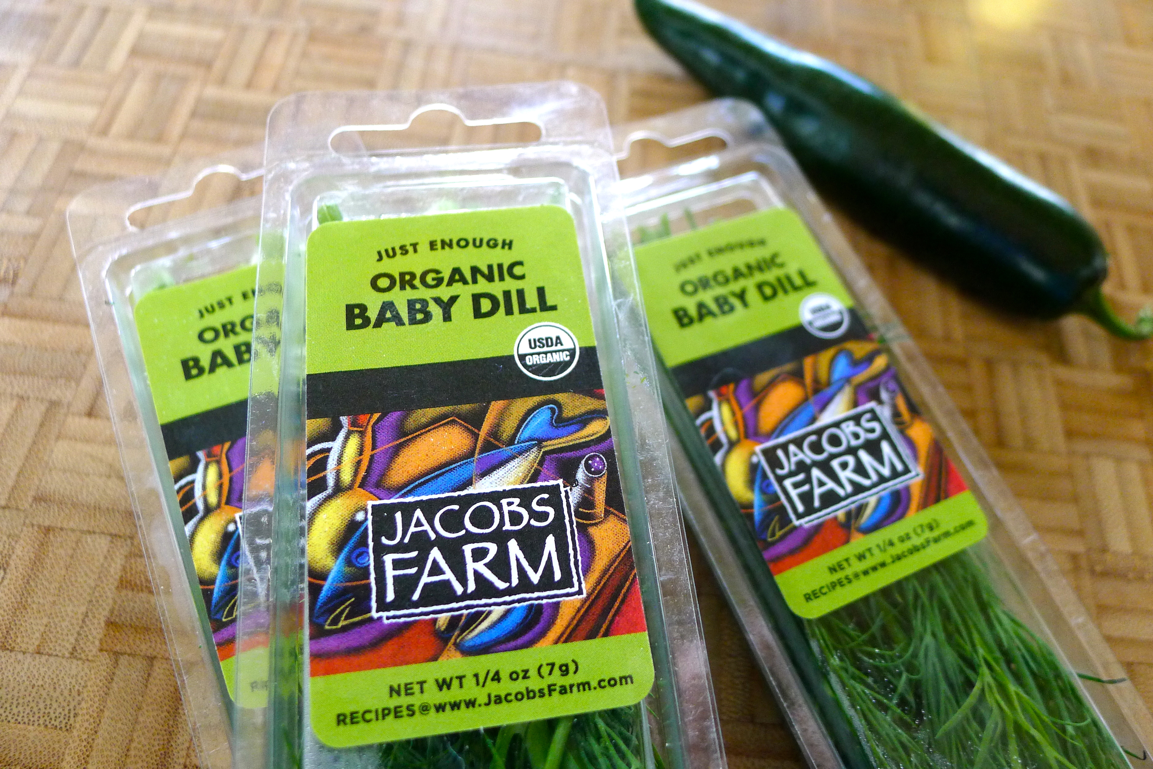Sterilize two lidded pint jars in the dishwasher. Into each, add plenty of dill fronds and a couple of garlic cloves. Fill the jars with the cucumbers. Into each jar, add ½ teaspoon each of the mustard seed, crushed red pepper, and peppercorns. Divide the jalapeno slices between the two jars. Finish with more dill.