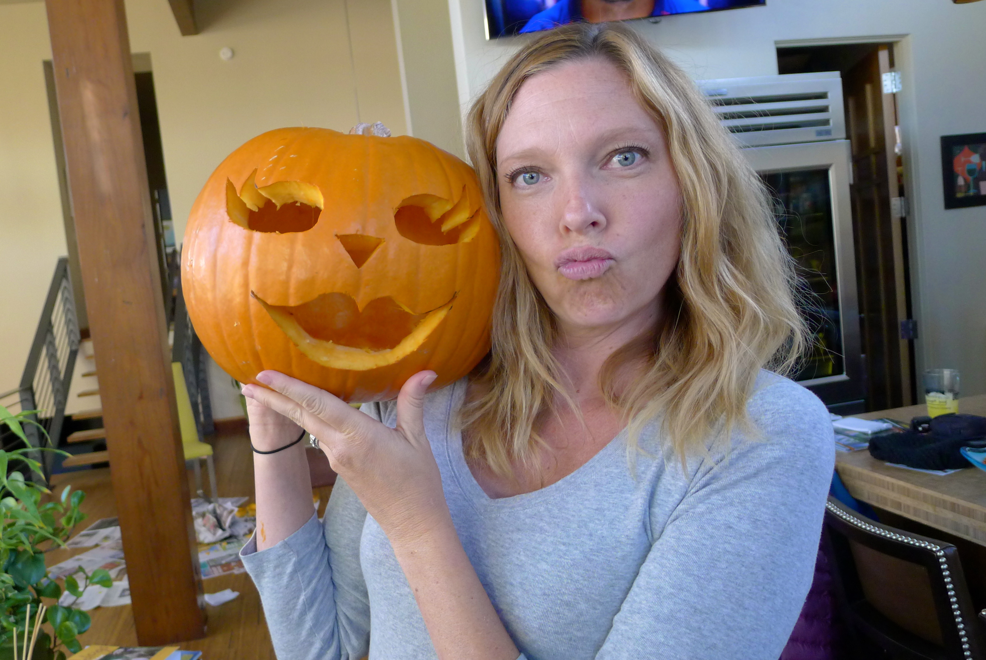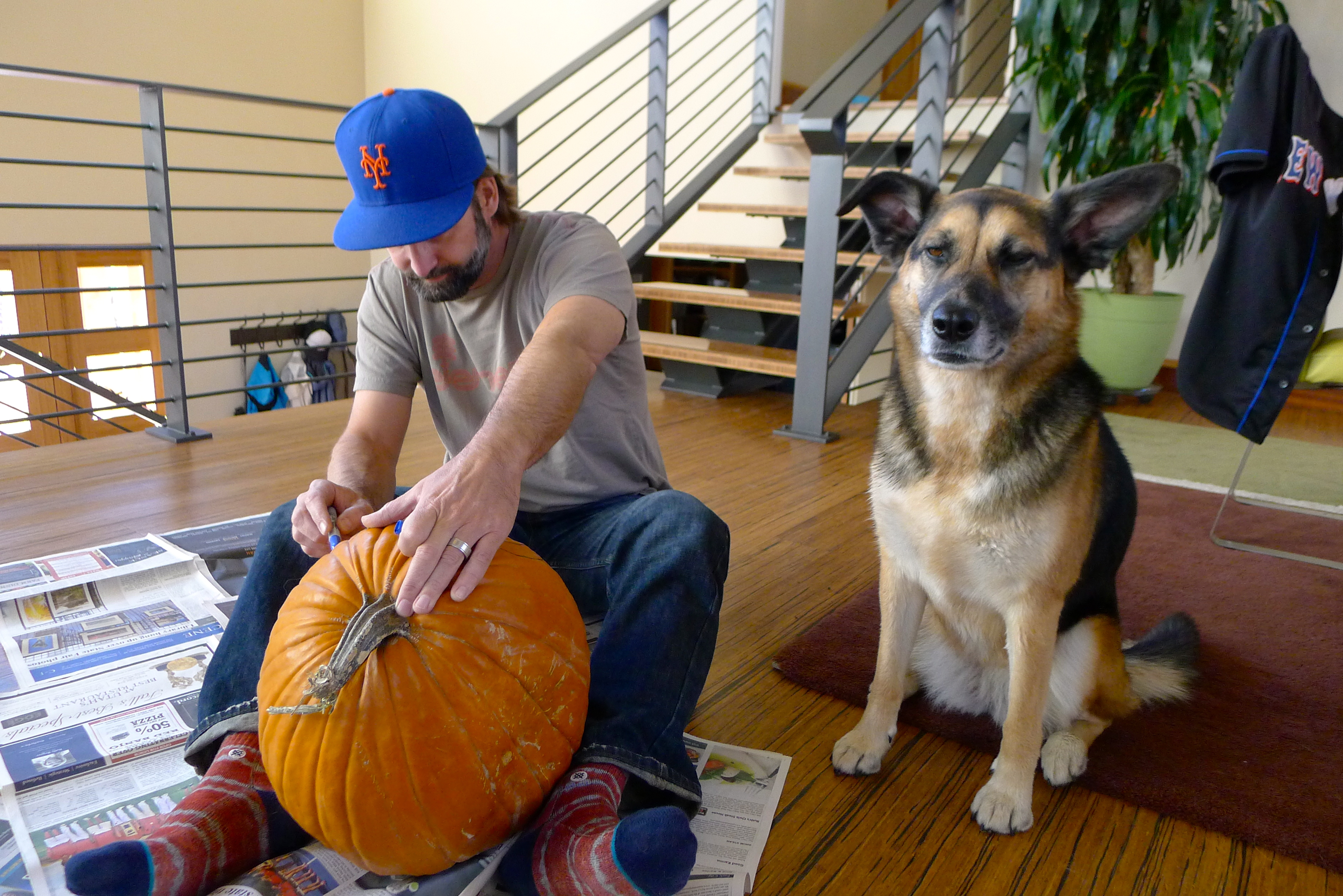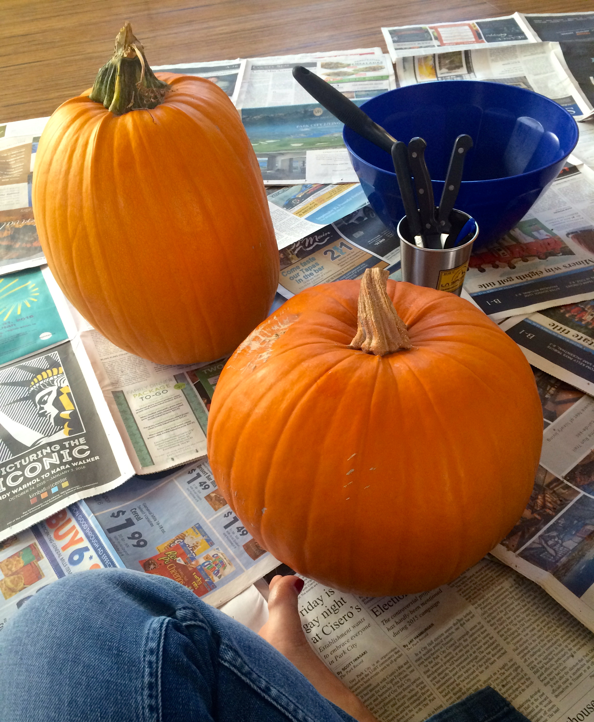 This year, on the heels of a Mexico trip and with a big-and-getting-bigger baby in my belly, we opted to take it slow for the weekend. The Mets would be playing in the World Series which trumped any horror movie I might have suggested, but I picked up a few pumpkins and a LOT of “fun sized” Halloween candy anyway. My brother was in town after a work event and helped John with the winterizing house projects that would have taken forever if I was his assistant. The boys indulged the preggo mama’s maternal wishes and carved pumpkins with me, I decorated the front porch with plenty of candles and twinkle lights, and we got into the costume collection for a few laughs. I even rinsed and dried the pumpkin seeds for roasting the next day.