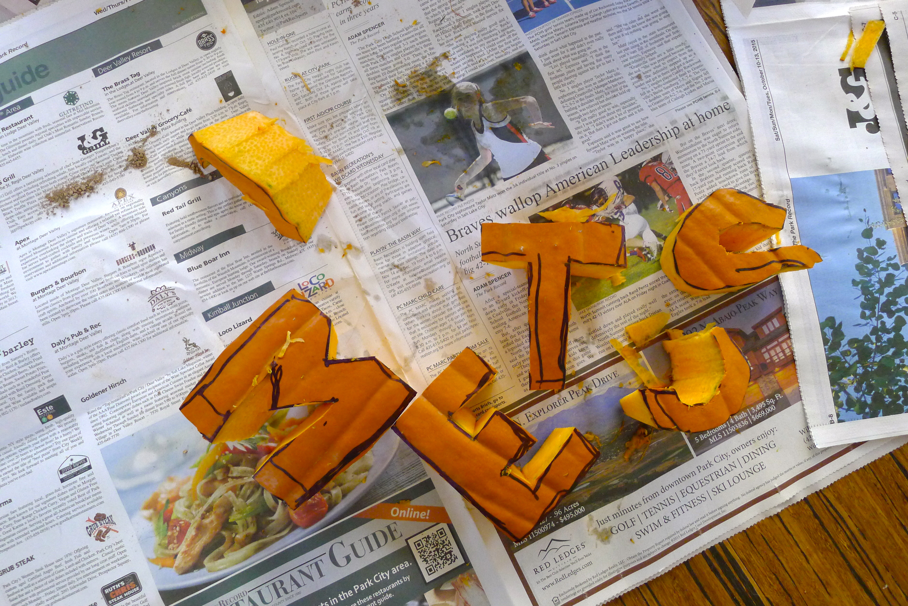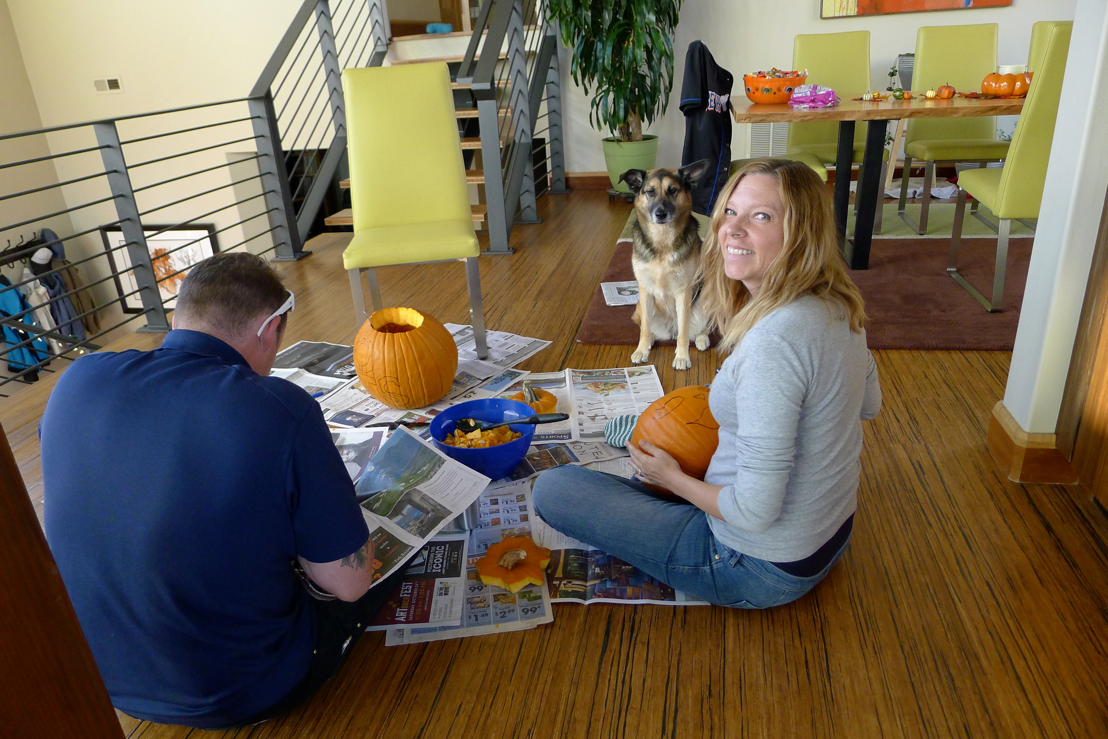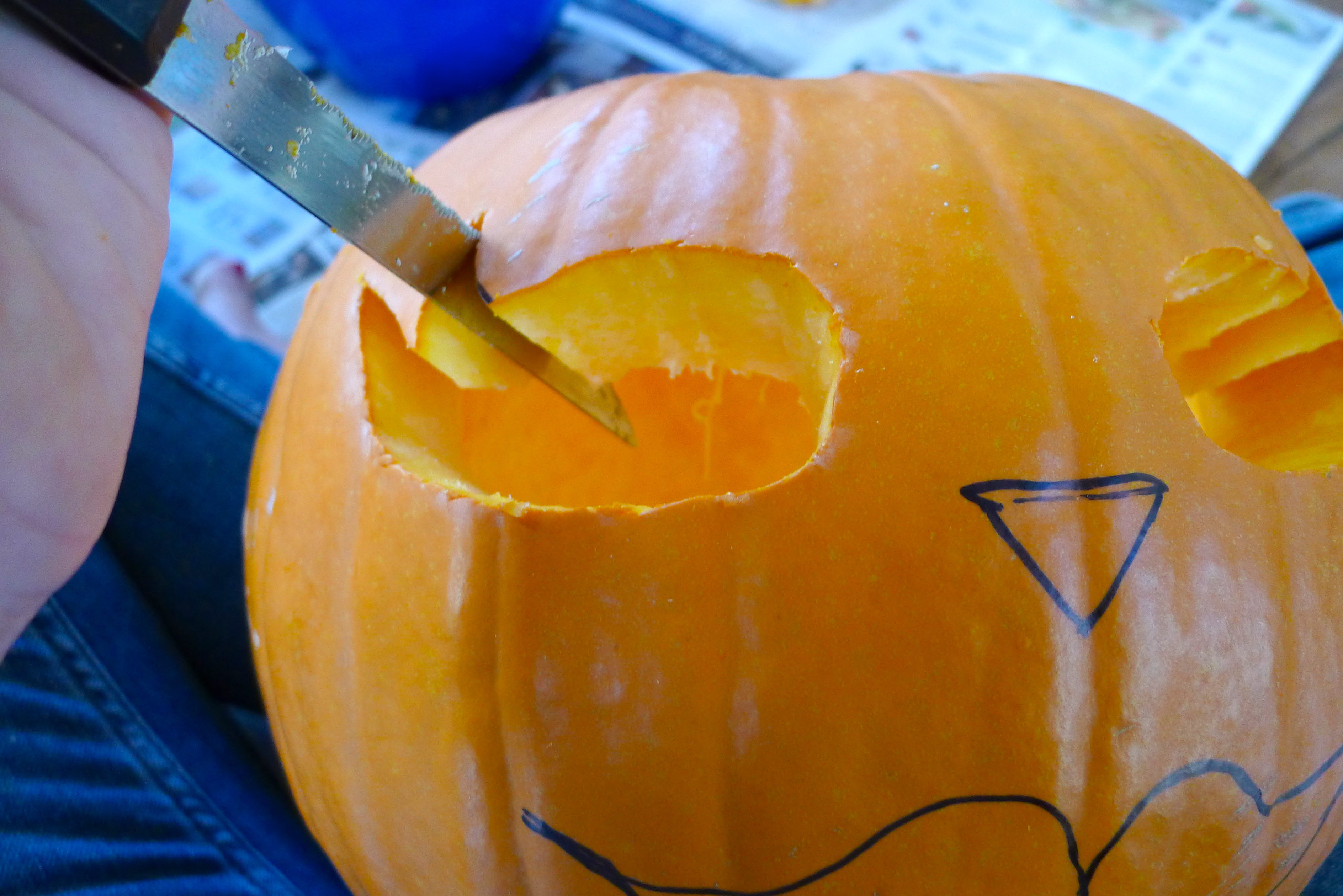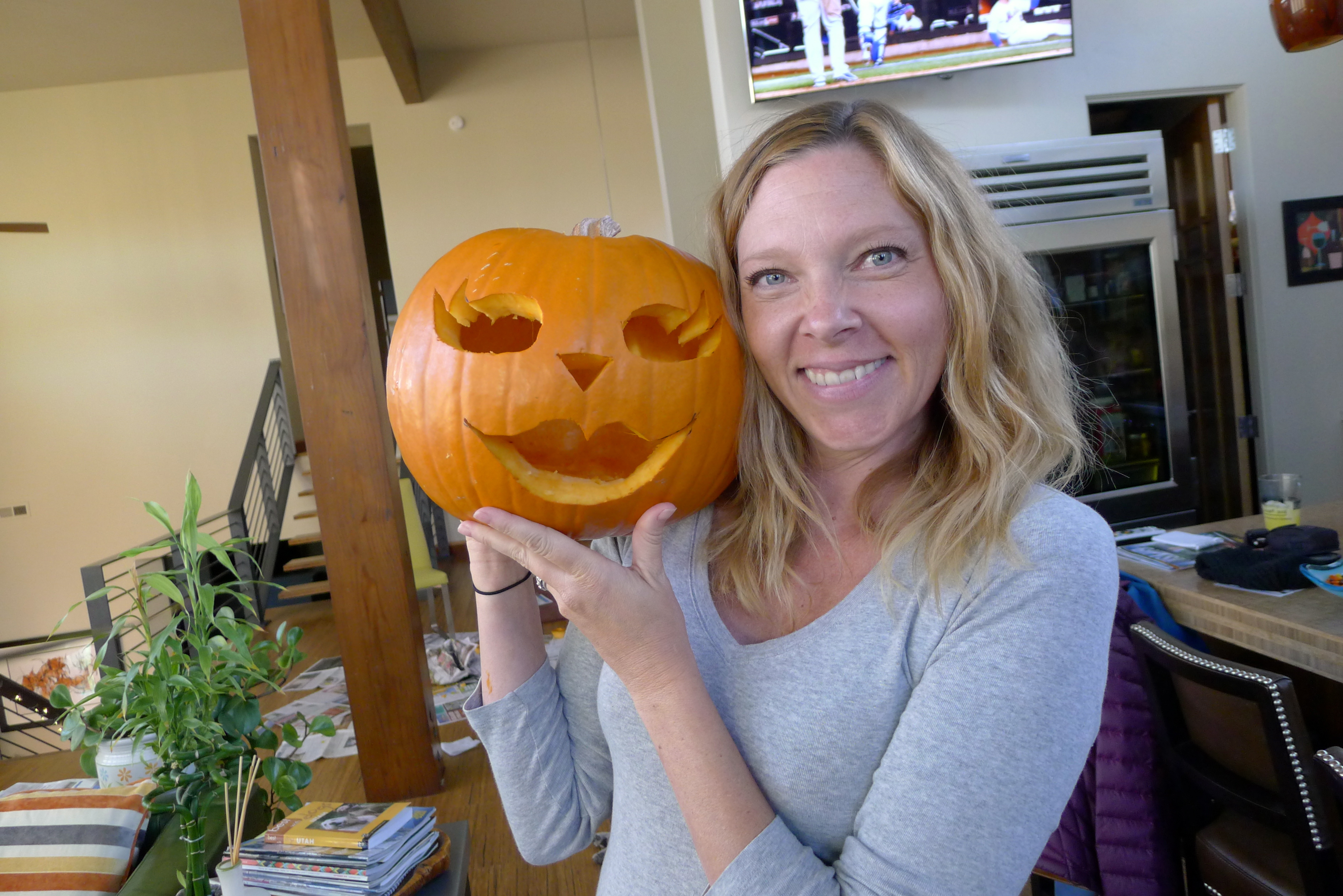 This year, on the heels of a Mexico trip and with a big-and-getting-bigger baby in my belly, we opted to take it slow for the weekend. The Mets would be playing in the World Series which trumped any horror movie I might have suggested, but I picked up a few pumpkins and a LOT of “fun sized” Halloween candy anyway. My brother was in town after a work event and helped John with the winterizing house projects that would have taken forever if I was his assistant. The boys indulged the preggo mama’s maternal wishes and carved pumpkins with me, I decorated the front porch with plenty of candles and twinkle lights, and we got into the costume collection for a few laughs. I even rinsed and dried the pumpkin seeds for roasting the next day.