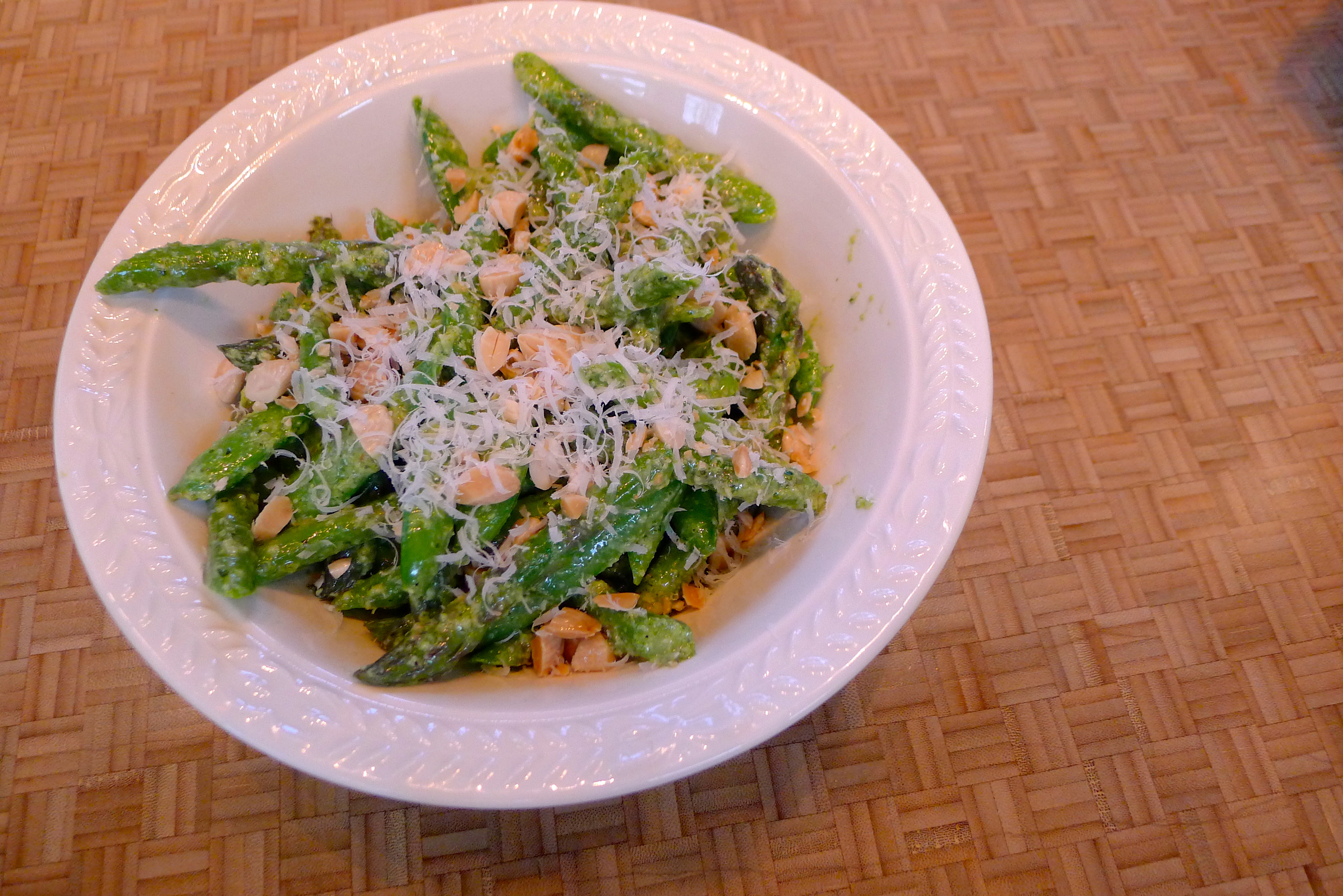 Chilled Asparagus and Snow Pea Salad with Lemon Tarragon Pesto