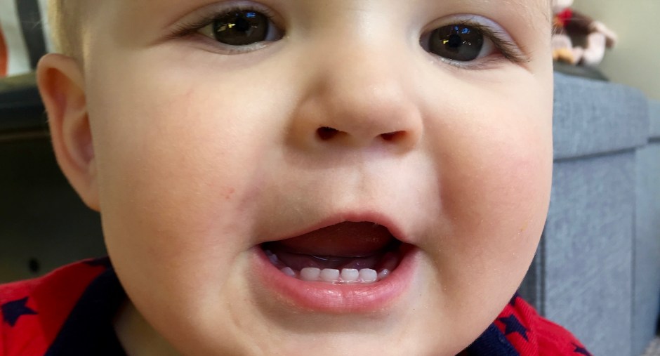 I weigh about 28 ½ pounds and I’m just over 32 inches tall. I wear 18 month-sized clothes. I have 14 teeth! Mom calls me an over-achiever!