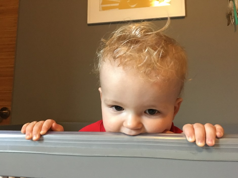 When I glance at the monitor to check on my sleeping baby and he’s doing laps in the crib.