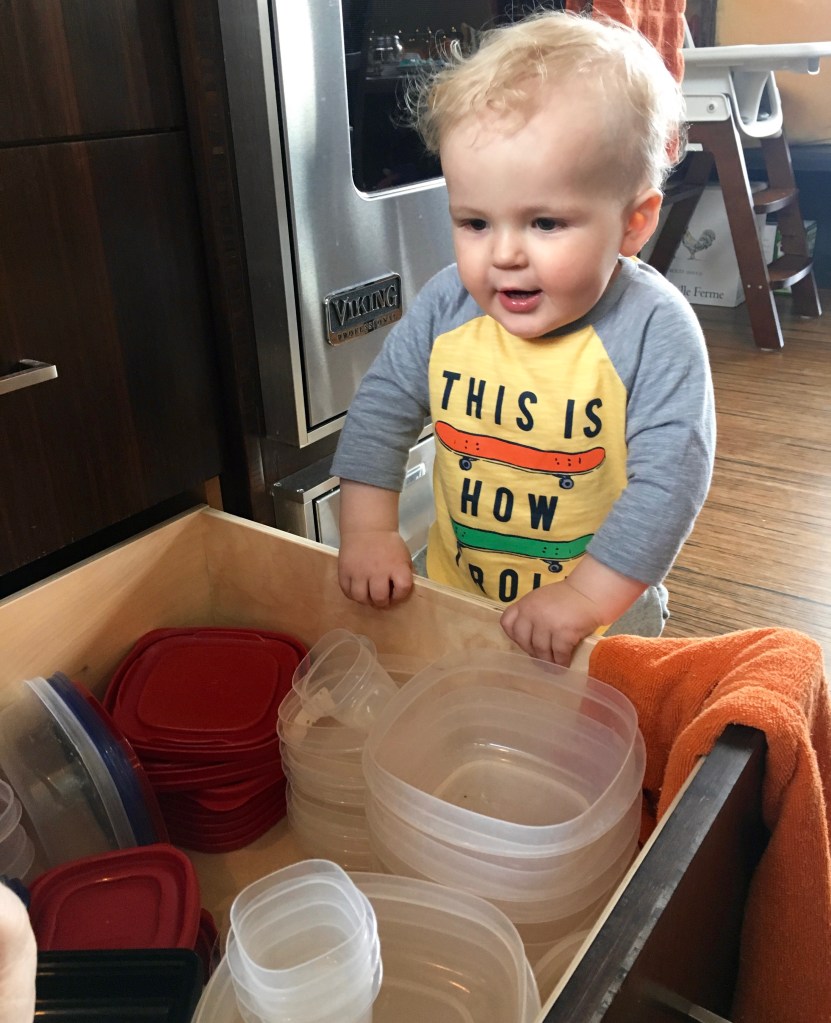 He hides his “peek-a-boo spoon” in that orange chair and then giggles when he finds it.