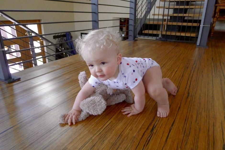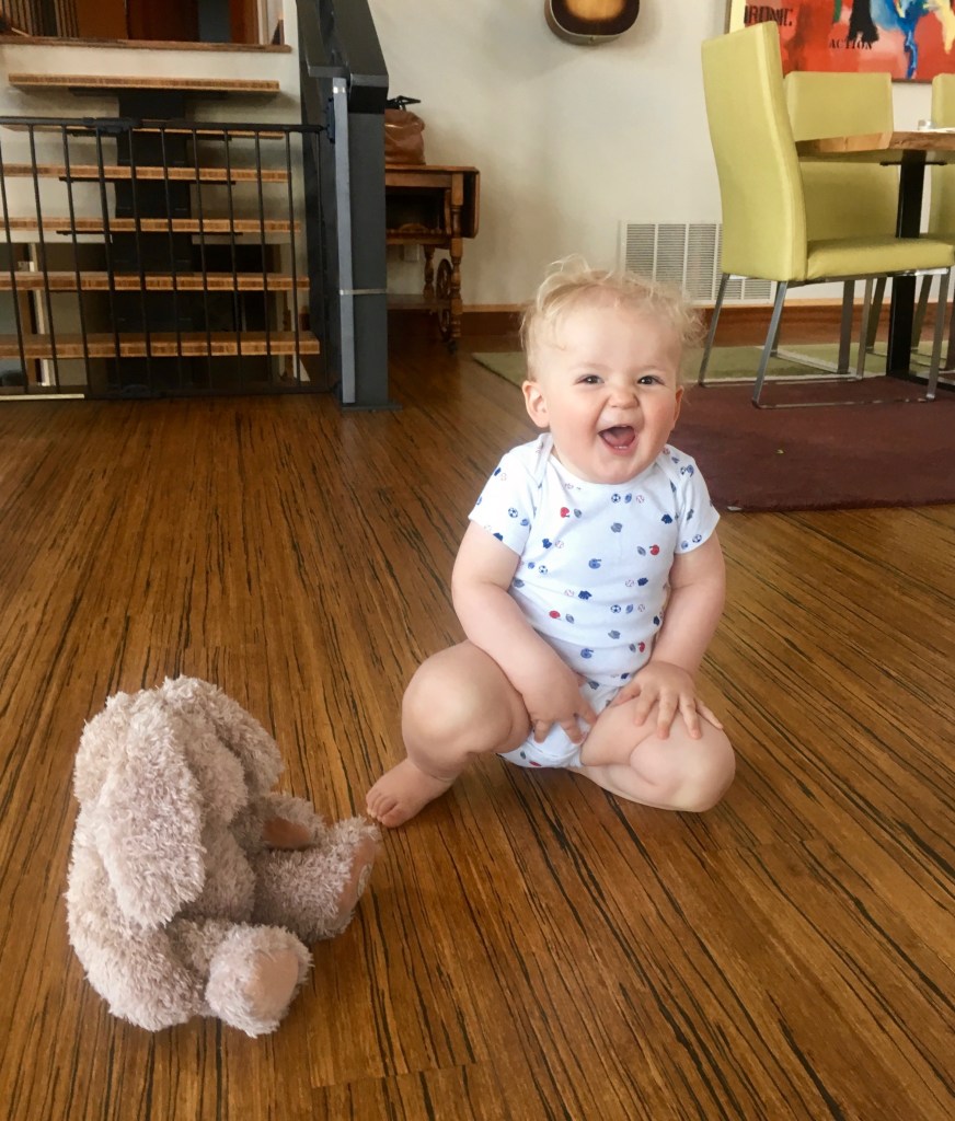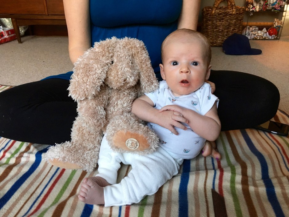 Later, after nap time, I snapped a few shots of my big boy with the same stuffed bunny that he posed with last year. What a difference! Time flies. He’s so joyful!
