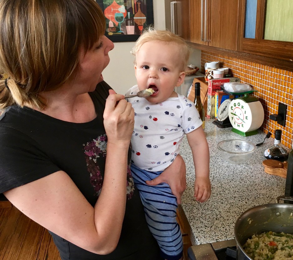 We had a little mommy/son dance party when we got home. I cherish those moments because I know these days are numbered; he’s a walking, ever-more-independent toddler! For our own Easter dinner, I made spring veggie risotto. Oden was my taste-tester and kept doing the hand sign for “more”- he loved it! So did we.
