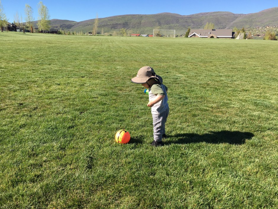 Kicking a ball is hard when you’re just learning to walk steadily!