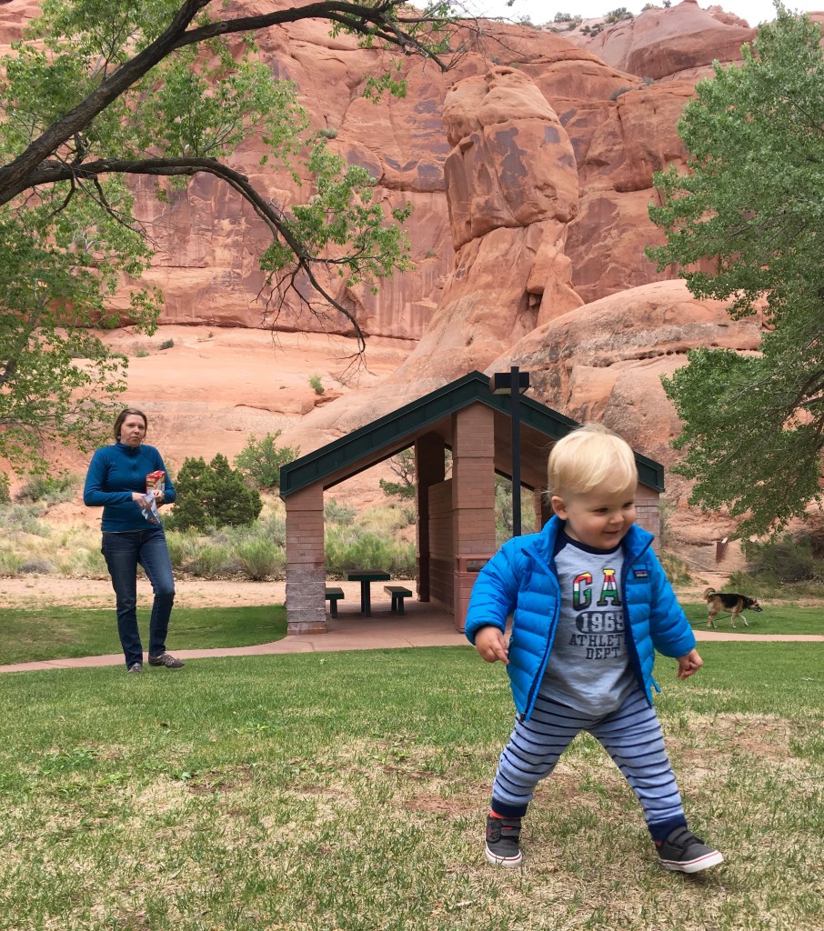 The last time we drove the 7-hour trip to Durango, we didn’t realize that Oden had outgrown his infant car seat and that’s why he screamed whenever he was in it. The trip took over 10 hours and we vowed to figure out a way to make it less maddening the next time. Our solution was to camp halfway in Moab. I found a spot at an RV park that had shade and made a reservation for us on the way to and from Durango. We could make it a few hours, we told ourselves, especially if we aligned with Oden’s nap. Brilliant!