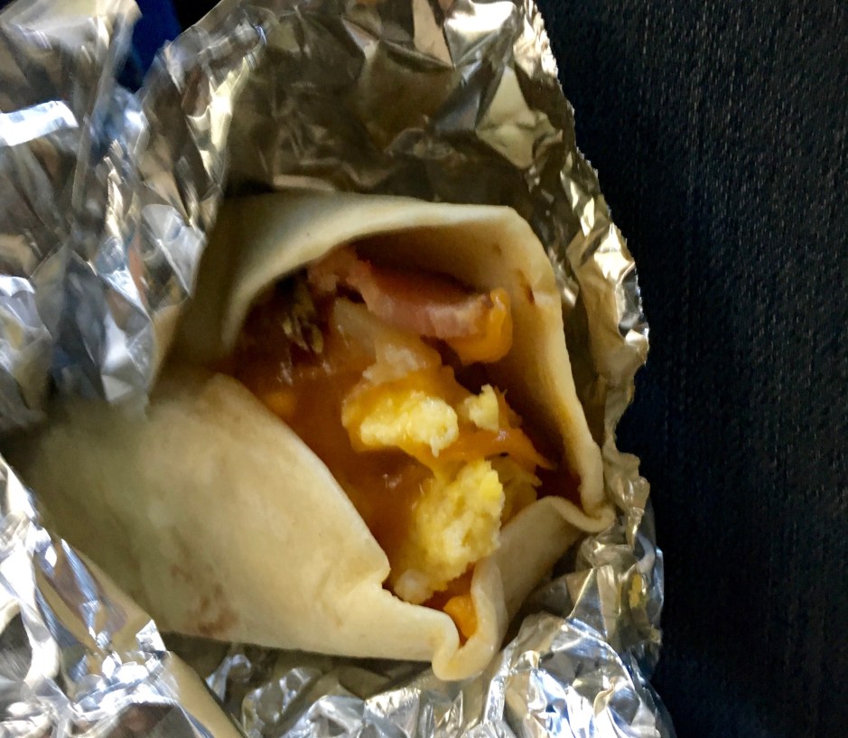 It was our night to make dinner, which was a tasty Trader Joe’s BBQ tri-tip, salad, and corn on the cob. I also used Willie’s little oven for the first time and made coconut brownies for our dessert! The only bad part of the day was knowing we had to leave in the morning. Oden had some extra grandparent time while we packed up, including time with that beloved shovel. My mom makes the BEST to-go breakfasts, usually an English muffin sandwich or something. This time, we had scrumptious breakfast burritos on the road. Each bite made me miss my folks more, particularly when my mom sent a photo of them relaxing by a fire! Oden fell asleep and we stopped multiple times to get his wiggles out. He did so well on the drive that we made the decision to drive all the way home instead of staying at that RV park again.