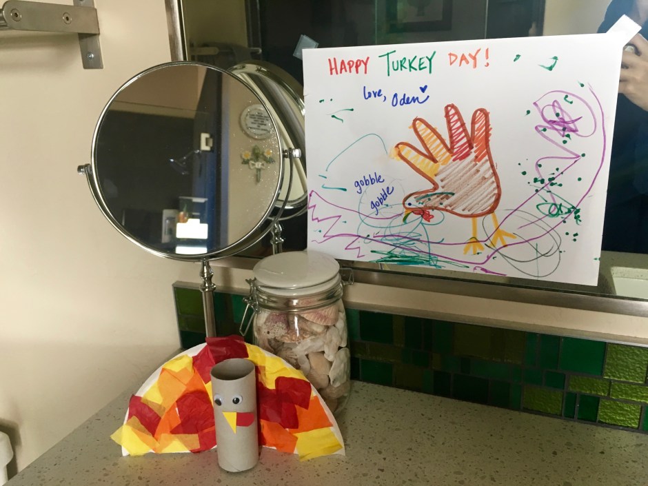 Even while juggling a time-stealing toddler, I enjoy the preparation before hosting a holiday. Oden helped with some turkey artwork as I made lists and decorated the house. Thanksgiving seems to get passed over these days, with many people jumping right from Halloween to full-blown Christmas. But I enjoy the transition time, the quietness of the short season where gratitude is highlighted. It’s important to count your blessings, and Thanksgiving is a good reminder to do it!