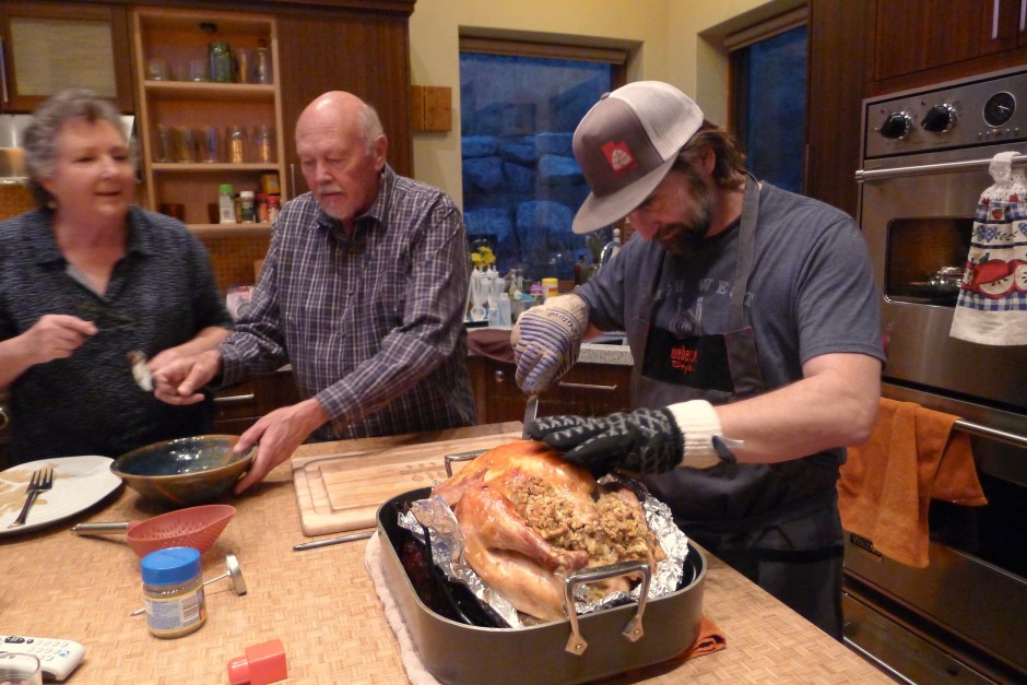 My folks’ visit was a short one and I really only had two goals: to enjoy making (and eating) our turkey feast and to get the Christmas lights hung. I’m happy to say we were successful! In between, we took in a beautiful sunset, had lots of Oden time for my parents (currently called “UMA” and “PAPA), played card games, and got silly as only my family can do. We took blurry selfies and passed around a turkey hat and just spent time together, making memories. Sure, there were moments of stress or impatience on my part (I’m working on it), but it was just what I’d wanted for the holiday.