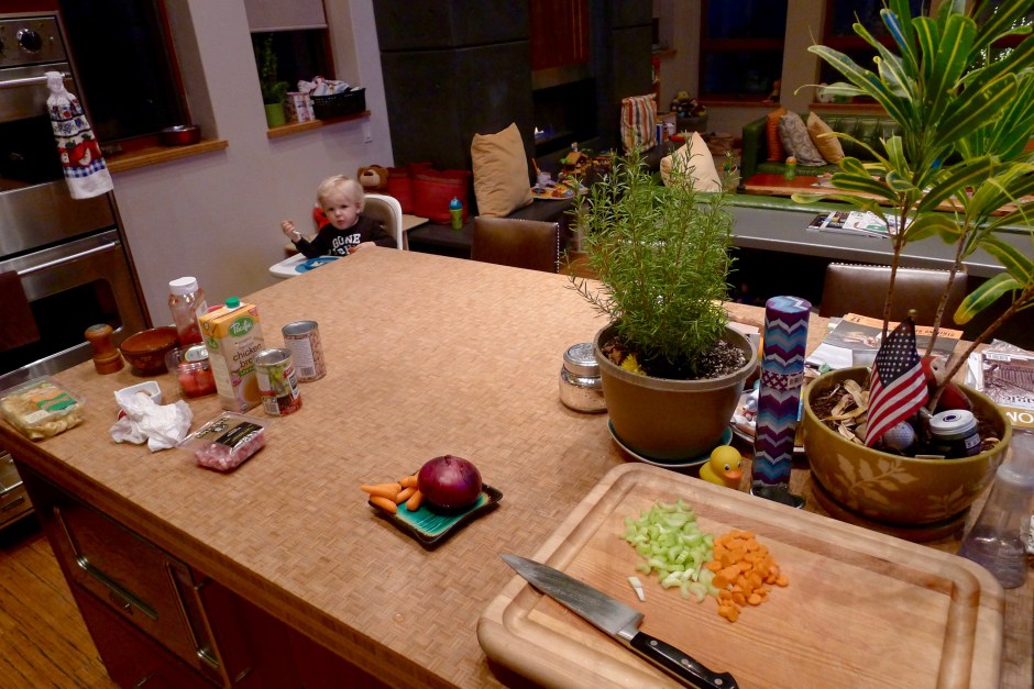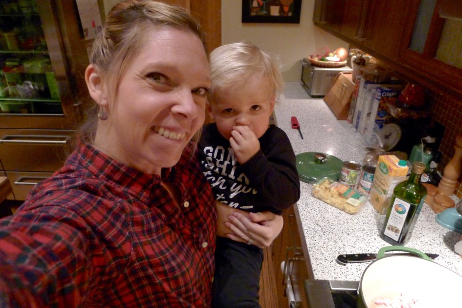 While challenging, 21-months-old is such a fun age. Oden is learning to talk, trying to say new words all day long in his adorable little voice. He also loves to be involved and I like make to make him feel like he’s helping. It’s awesome to see his pride in trying something new! He supervised the beginning of the soup, when I browned some pancetta in my pot.