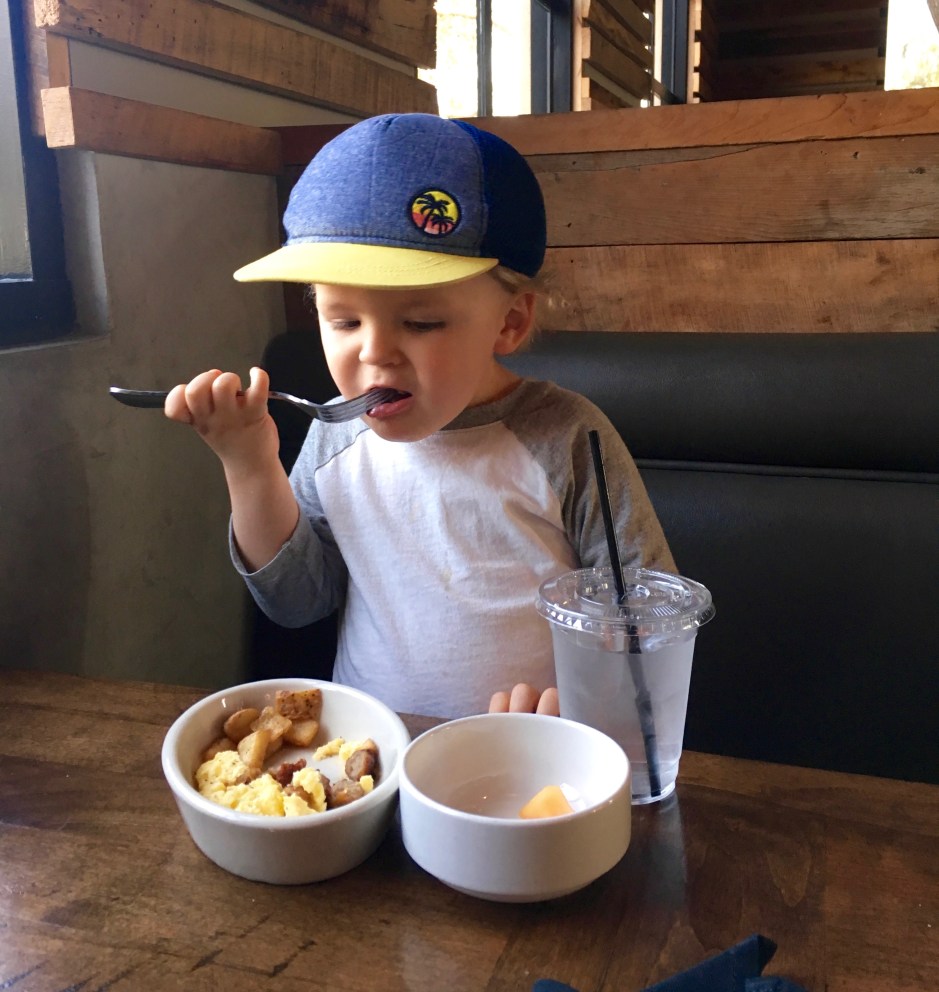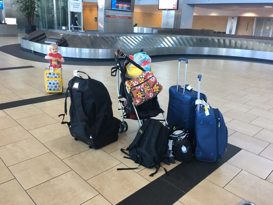 Oden traveled quite a bit in his first year, but as any parent knows, there’s a big difference between an immobile baby and a rambunctious toddler. I never wish for Oden to be a TV/movie-watching child except when we travel. He’s a busy little guy who isn’t interested in settling in for a show. Other than a 20-minute scream-crying situation (probably due to his ears popping), he did pretty well on the flight. He loved carrying his own backpack and toting around his suitcase, too!