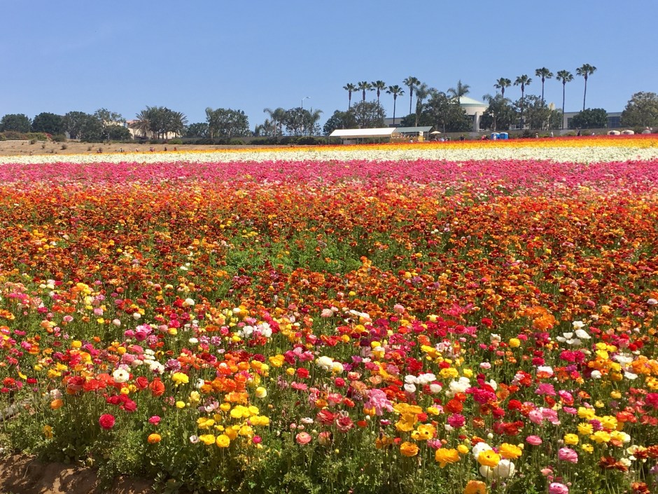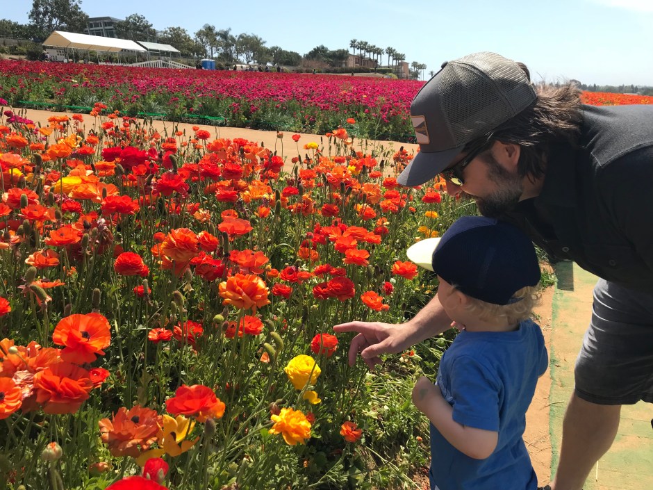 My folks were already hanging out at our condo when we arrived. Take-out food was on the way. We settled in, enjoyed some burgers, and hoped Oden would sleep well in his pack-n-play right next to our bed. Our ground-level room was pretty loud until close to 10pm with excited kids running back and forth to the nearby kid’s pool. In the morning, we all took a stroll around the property and checked out the unexpected views of the Carlsbad Flower Fields. Acres of colorful ranunculus flowers grow adjacent to the resort with the Pacific Ocean just beyond. We stopped to take a few selfies. In true fashion, my mom spotted a “room with a view” being cleaned and decided it couldn’t hurt to ask the front desk if it was available. Before we knew it, we were moving rooms- not to the condo she’d seen but to a third-level vaulted-ceiling gem! The space was an absolute upgrade and the views were fantastic! Mom does it again!