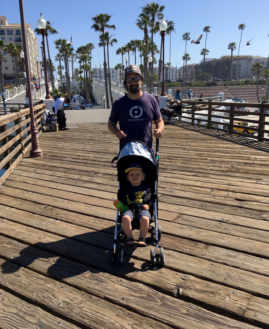 In our week of Cali time, we had a good balance of activities and just laying low together as a family. We made dinners, taking advantage of the grills right below our condo. We visited the pools, one just for kids and families and one for adults only. Oden couldn’t get enough of 1-2-JUMP! John, Oden and I visited the Museum of Making Music which was just up the street. We explored the pier, watching surfers and munching on burgers. We searched for the bunnies that came out every evening around sunset. We enjoyed the complimentary happy hours offered by the resort each evening, snacking on cookies or chips and salsa and sipping margaritas or sangria. We soaked in that flower-ocean view daily from our patio, waving at the people taking wagon tours through the fields. We napped in the afternoons and played cards after dinner. Sometimes, it’s the downtime that really counts on a trip.