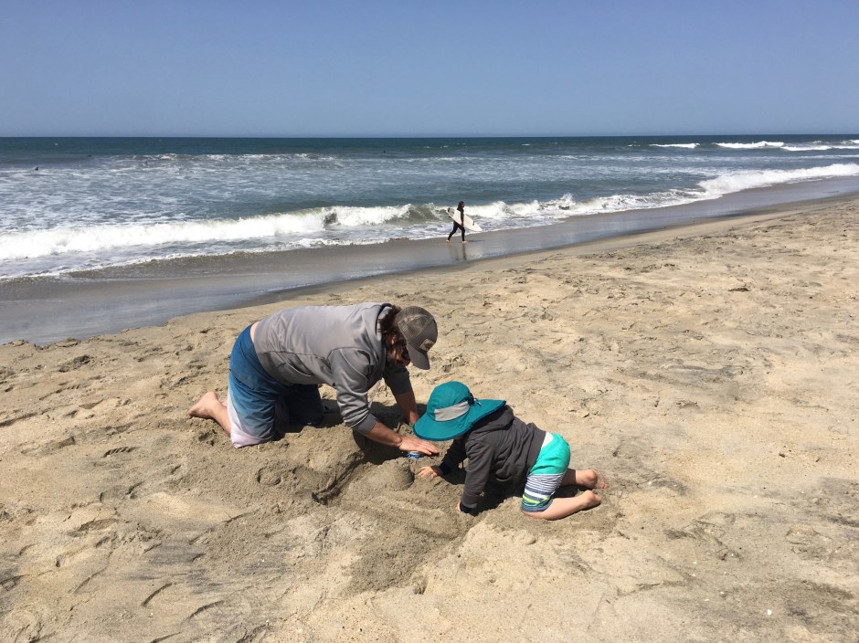 Probably my favorite times during the trip were our visits to the beach. I grew up with great memories of beach days. Amanda and I would leave school after our last class ended and drive to the beach. There’s nothing like the feeling of cool sand between my toes, the repetitive and soothing sound of the waves, or the salty smell of the ocean. I was in heaven being on the beach with my family, watching Oden and John building sand castles and watching surfers and combing the shoreline for seashells.