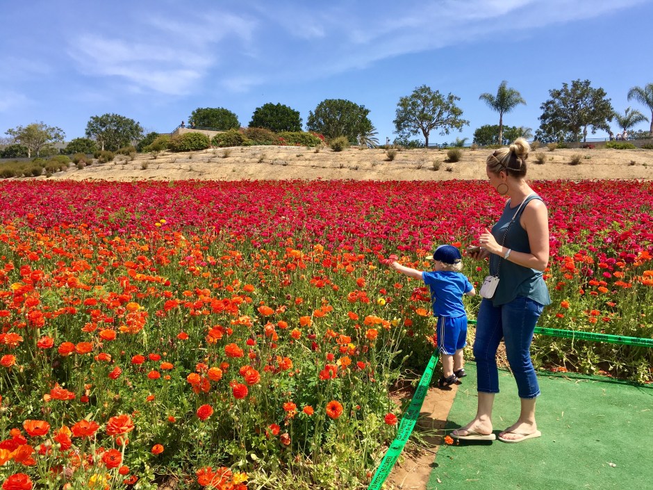 I’m so excited to tell you about our beach trip to Carlsbad, California…mostly because it happened way back in April! That should be a testament to the roller coaster of life right there- time just keeps on rolling by. We really looked forward to the trip because it had been roughly a year since we’d done any kind of big vacation. A whole year! I was out of practice with what to pack for our little family and had some apprehension about how Oden would do on the flight. Being 2 years old, our big boy would have his own seat on the plane. In preparation, I got him his own set of luggage and a lightweight travel stroller, loaded up his rarely-used tablet with games and Sesame Street, and packed his little backpack with toys. Predictably, this Cali girl was looking forward to some sunshine and sand in my toes. What I didn’t expect was a killer ocean view, fields of glorious flowers, and time with rarely-seen family and dear friends. Read on!