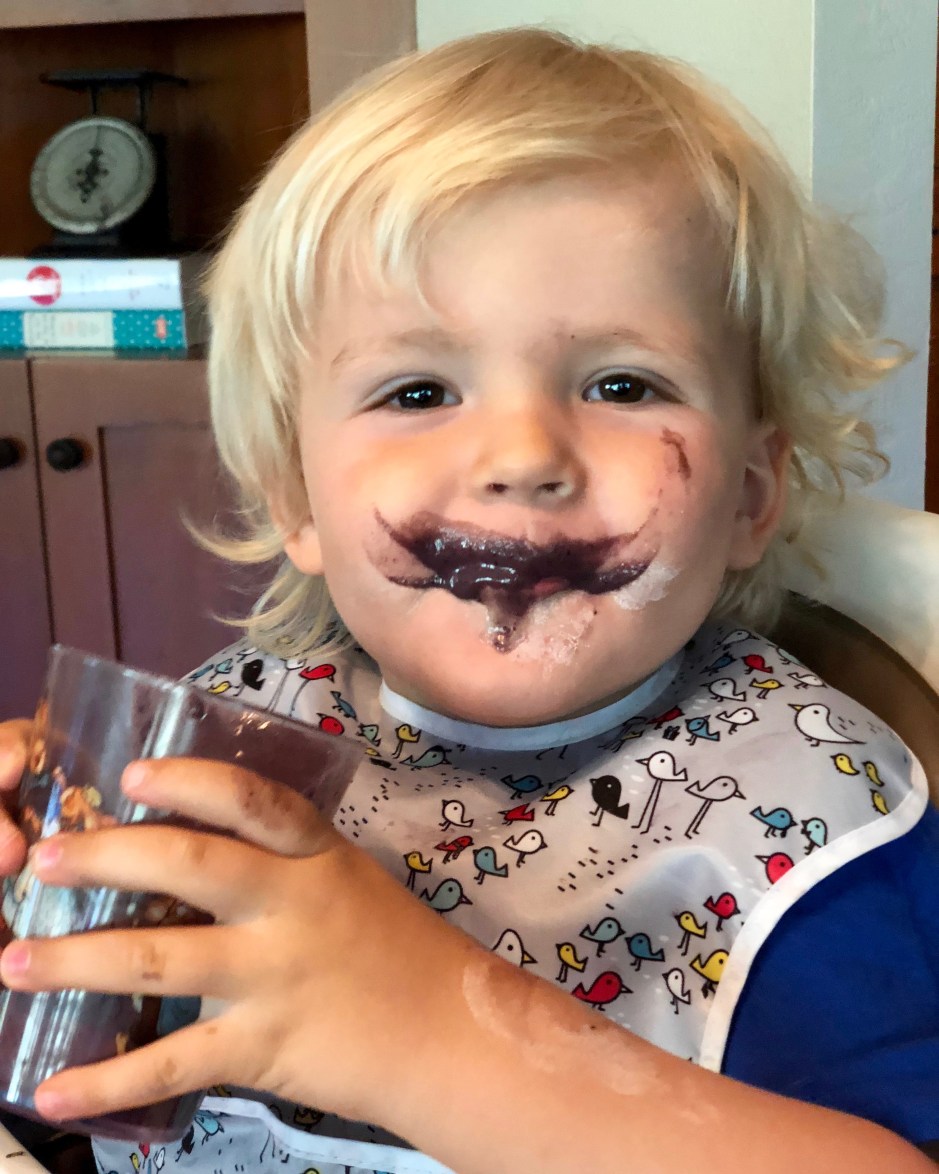 Oden helps Daddy on “Smoothie Saturdays”… I take photos of the aftermath.