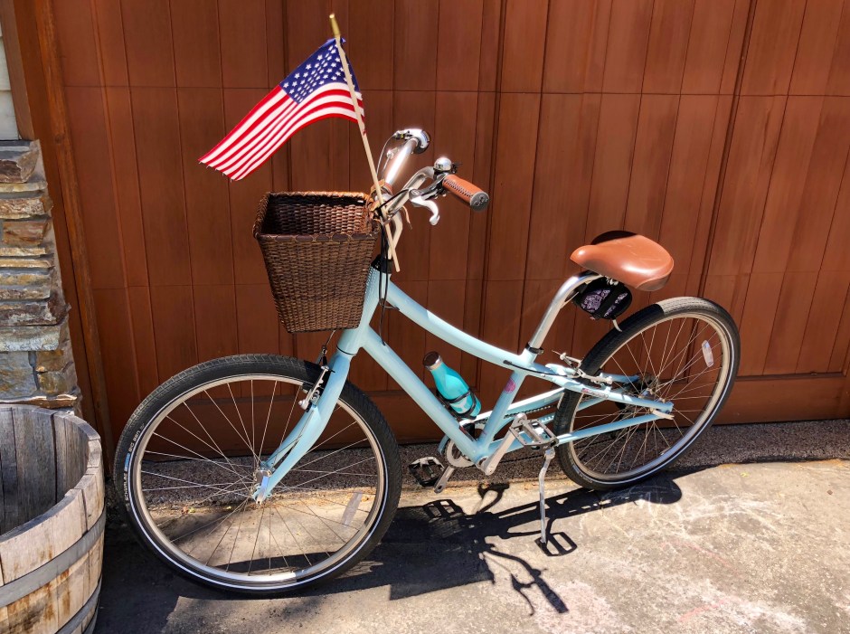 Part of the reason we moved to this house was the neighborhood’s proximity to town. We envisioned riding bikes to events and parades, and that’s just what we did on the 4th. We shoved the baby carrier into the trailer and headed for Main Street. It was already warm and I confess that this preggo mama in a fitted dress needed to stop and rest on the way there! We ended up securing the bikes to a pool fence at a condo complex and walked right out to Park Avenue toward the end of the parade instead of Main. It was less crowded and we were able to find a shady spot to watch the parade, conveniently right across the street from a cute puppy.