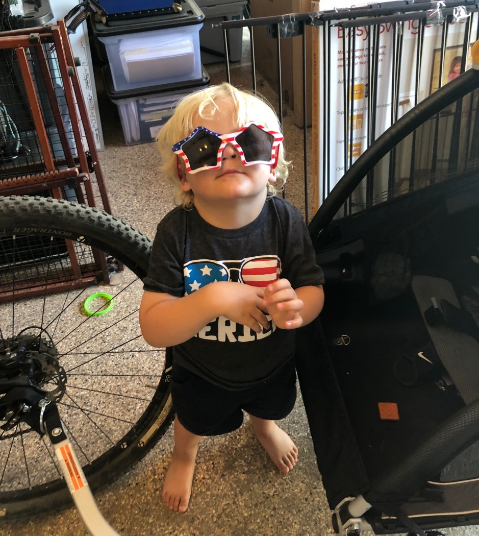 As dusk neared, we packed up the trailer again with blankets, beverages, sparklers, and more cake and rode bikes to the local golf course for fireworks. These were Oden’s first fireworks and another Summer Bucket List item, and it was so cute to have him nervously hold me close and yell “POP!”