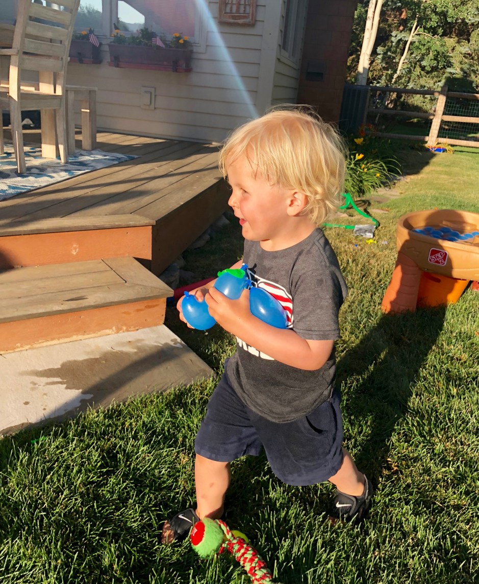 We laughed after the fact that Oden had his best day ever. Parade, popsicle, friends and dogs, running though the sprinklers. We crossed off a Summer Bucket List item with Oden’s first water balloon fight. He’s been asking for them since! By the end of the party, he was naked and jumping on the trampoline, two pieces of cake deep. Oh, to be TWO!