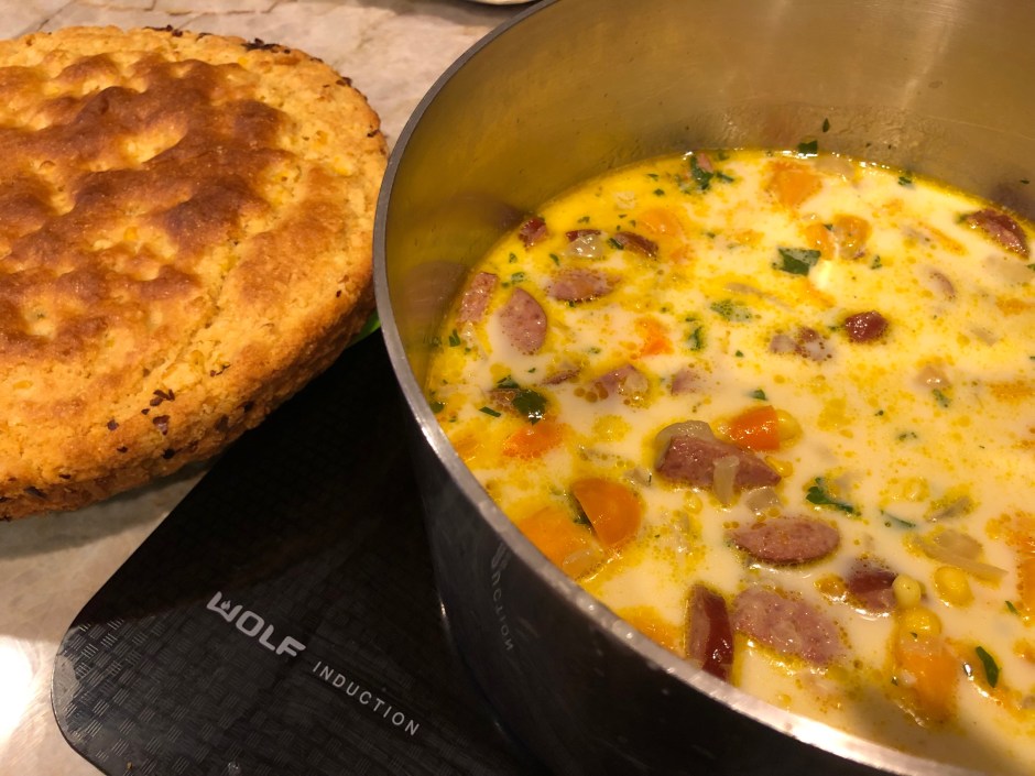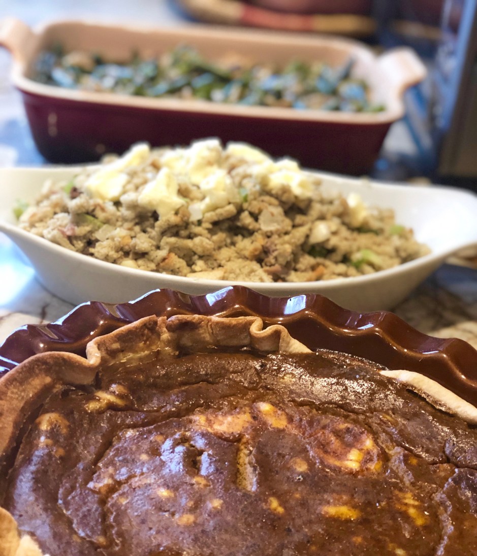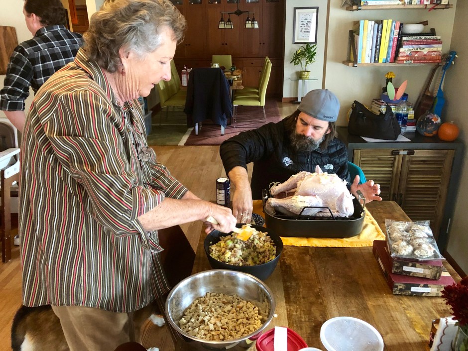 John made a delicious turkey, I made a corn pudding and a pie, and my mom and brother made the rest.