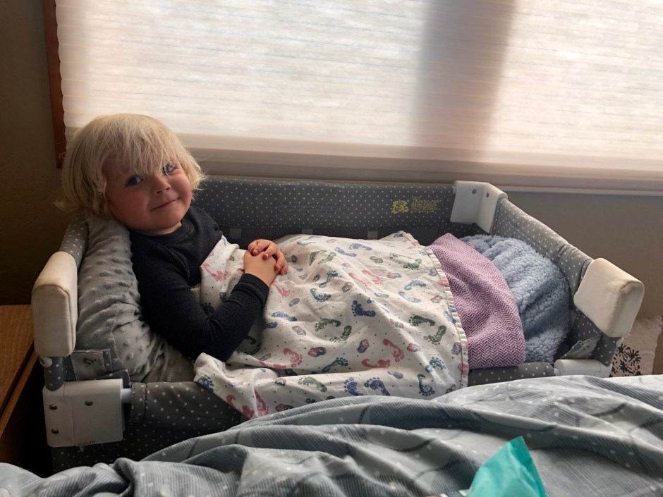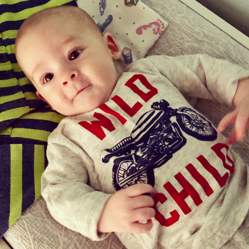 Proof he’s not always happy. Also, he no longer fits into these jammies.