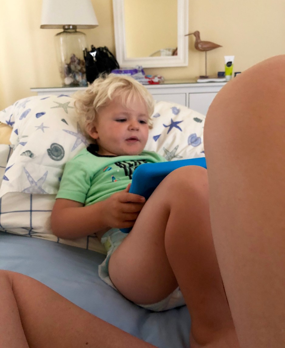 Back in August, I was five months pregnant with Mr. Morrison, so I was past the nauseous part and feeling pretty good. I don’t think it needs to be said that traveling with a toddler is a source of anxiety for most parents. It can go one of two ways- a super fun adventure or a screaming disaster! We started off the trip on a sour note by missing our first flight. Instead of going all the way home before the next flight, we decided to leave the airport and get lunch nearby. We hopped on the bus (Oden’s favorite!) and were almost to the economy lot when I realized we’d already checked Oden’s car seat with our luggage and couldn’t go anywhere. So, we stayed on the bus, headed back to the airport, and basically rode escalators with Oden for a few hours. Needless to say, I was happy when my little traveler fell asleep on the first flight. Almost as cool as escalators, the moving sidewalk was a big hit before our second flight. We finally got to our friends’ farm super late, but got to wake up in one of my favorite places. I love the morning view from the bed!