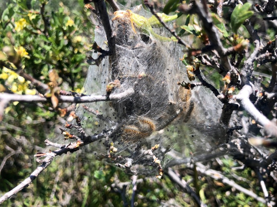The first thing I noticed wasn’t with my eyes. Unseen birds were providing a joyful soundtrack to our hike; my feet kept the beat. Cholula darted back and forth across the path, her sniffing nose in overdrive. As always, her happiness was contagious. I started counting wildflowers- there’s a sweet pea, and is that a Utah daisy? I hummed an old tune I remembered from Girl Scouts. “I love the mountains. I love the rolling hills. I love the daisies. I love the daffodils…” I couldn’t get over all of the shades of green on the hillsides. After the longest winter in memory (which included snowstorms in May, for crying out loud), the ground had opened up in vibrant color. Every now and then, I’d pull a sprig of fresh sage from the trailside and roll it around in my hand by my nose, smelling that invigorating high desert aroma. I noticed a ladybug clinging to a tiny rock and hoped for good luck. I stopped to examine a nest of caterpillars tucked into some scrub oak. I wandered through various crossroads in the trail, which was one I wasn’t familiar with. Man, do I love exploring a new trail. I’d forgotten.
