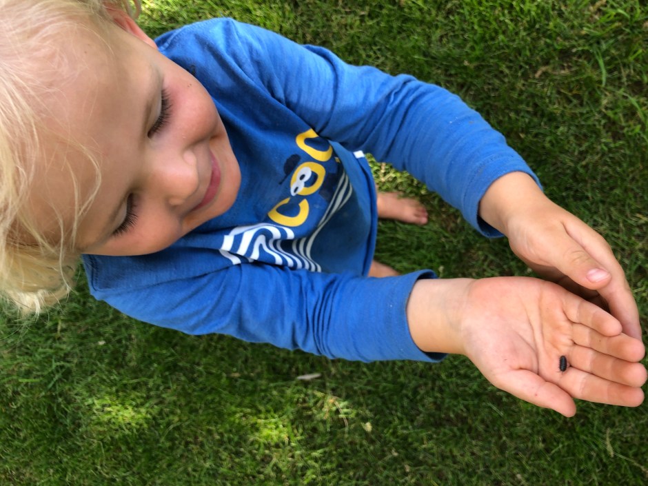 Speaking of bugs, Oden has discovered Roly Polies!