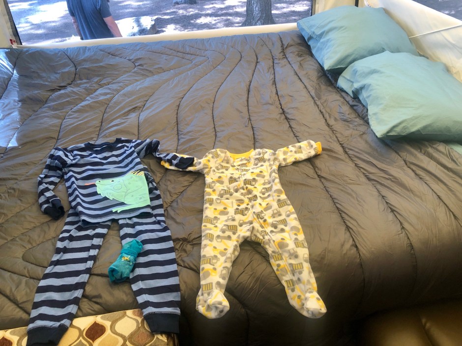 We went camping! Cute little jammies.