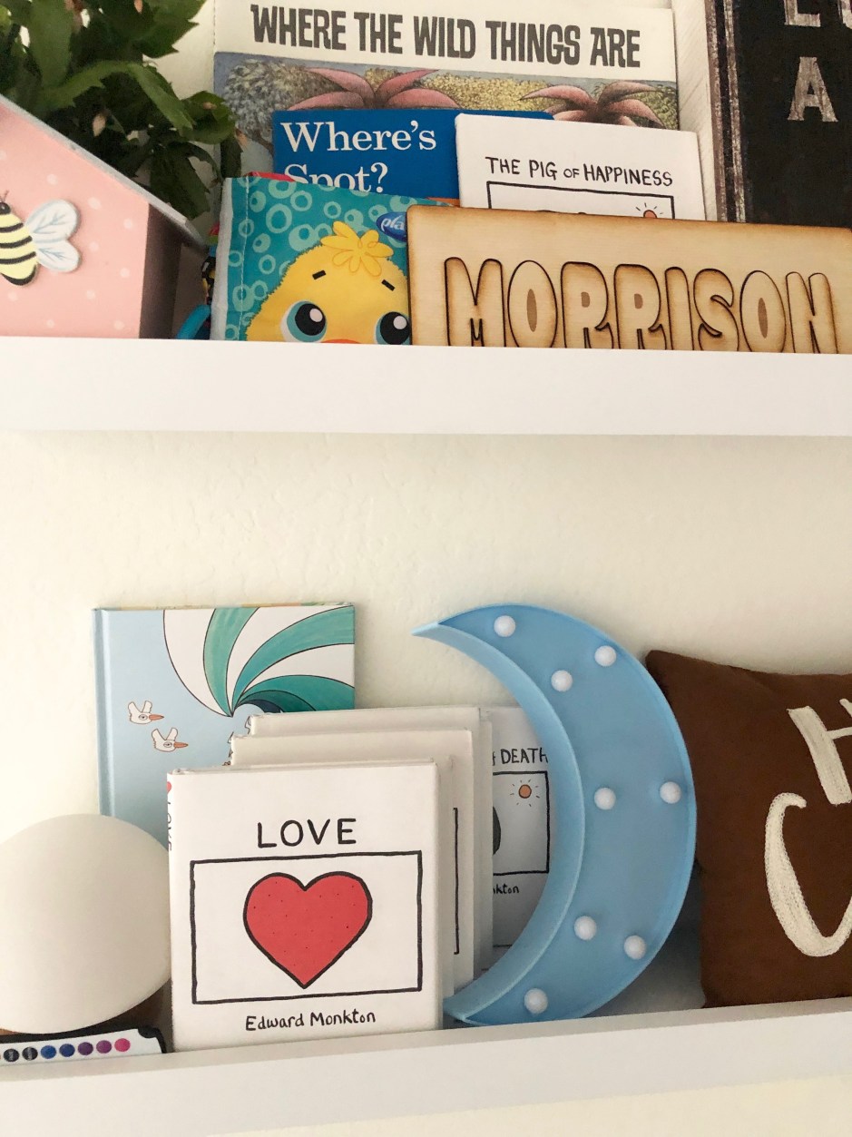 Just recently, I hung toy baskets and knick-knack shelves. I added live plants and rearranged some of Oden’s books. I still have some things I’d like to hang on the walls and there’s space for Morrison to fill his room with memories and treasures. The room will probably look different again in a couple of weeks! So much of Mo’s life is hand-me-downs; toys, clothes, even some decor in his room were all Oden’s. But I’m glad this room has become uniquely his. Some incredible memories have already been made in here!