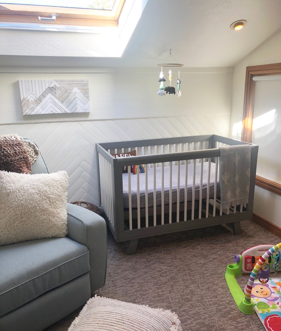 Morrison joined us right after Thanksgiving, and any work to prepare the nursery came to a screeching halt as we submerged ourselves in Newborn Land. Mo slept with me (literally on my chest)for a long time, and then in the little bassinet next to my bed, so there was no rush to have the nursery complete. Oden was still sleeping in his crib, which was converted to a toddler bed. Once we got him a big boy bed, we were able to move the crib into Mo’s room. I hung a sweet mobile over it and seeing it in the room motivated me to finish with the details.