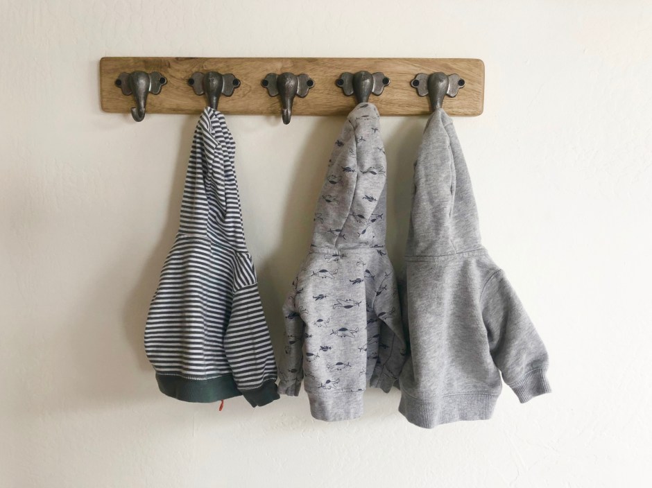 During their Thanksgiving visit, my brother installed some bookshelf ledges. The boys sanded and repainted my grandmother’s cabinet a cool gray color to match the crib. I’m so happy that it finally has a place in our home! Just like Oden’s room, I like having old items to balance out the new. Bit by bit, the main things in the room were coming together. I pulled Oden’s newborn clothes out of storage and my mom helped sort them. What a fun afternoon, picking through teeny tiny clothes and remembering how quickly Big Oden had grown out of each item. I lovingly tucked little onesies and burp clothes in the changing table drawers. I cooed at newborn-sized diapers as I stacked them on the shelves. I wondered what our new family member would be like. What would life be like with two boys?