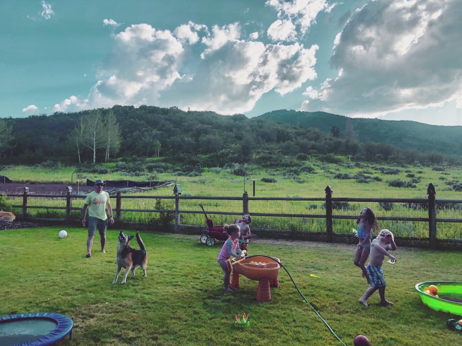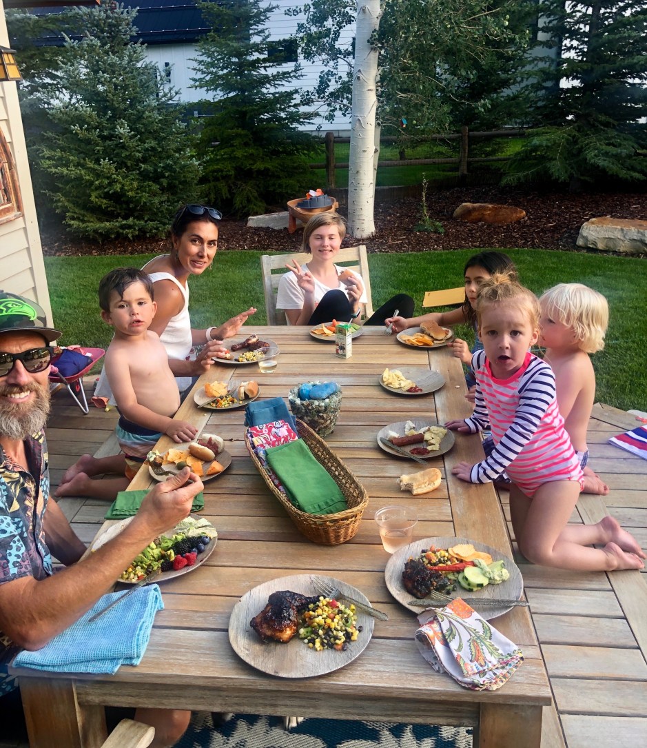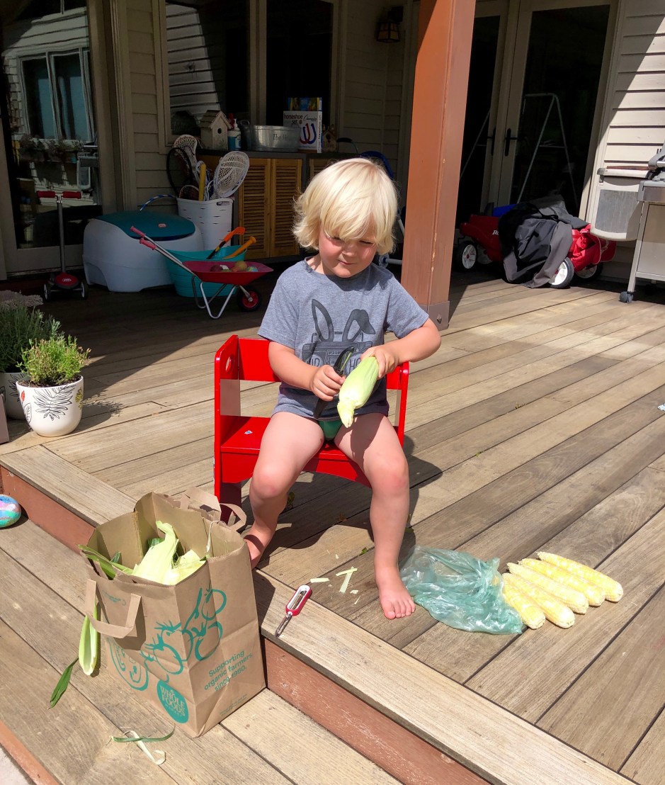 Wow! September is right around the corner. School has started for bigger kids here in Park City. We wrapped up Oden’s swim lessons this morning and he starts preschool very soon (sniff sniff). While I always look forward to autumn and hope it lasts a long time, it’s bittersweet to say goodbye to summer. A couple weeks ago, we threw a little BBQ for a few friends and neighbors to enjoy this sunshine while it’s still here. The weather was perfect for firing up the grill and I had some fun water activities in mind for the kiddos. I employed my kitchen assistant to shuck some corn to make my charred corn and black bean salad. There’s nothing like hosting people in your backyard to motivate you to get it in shape!