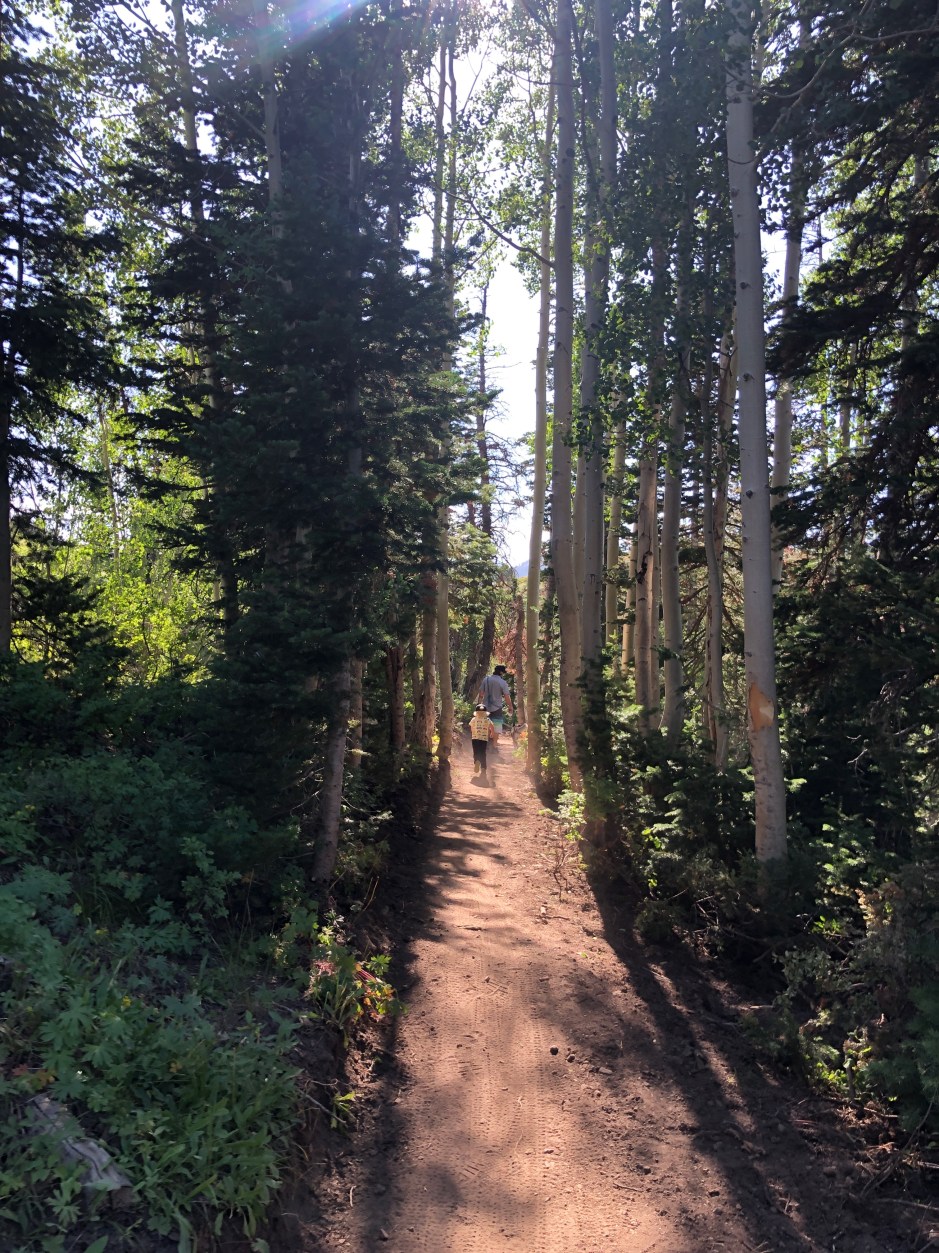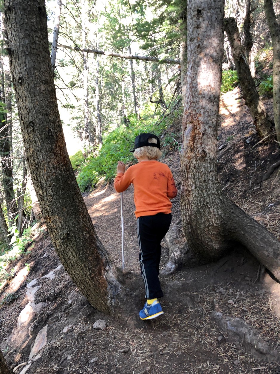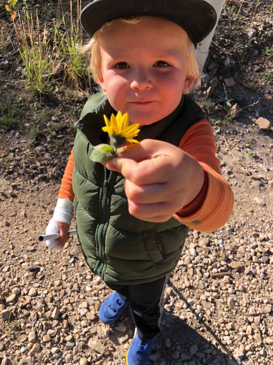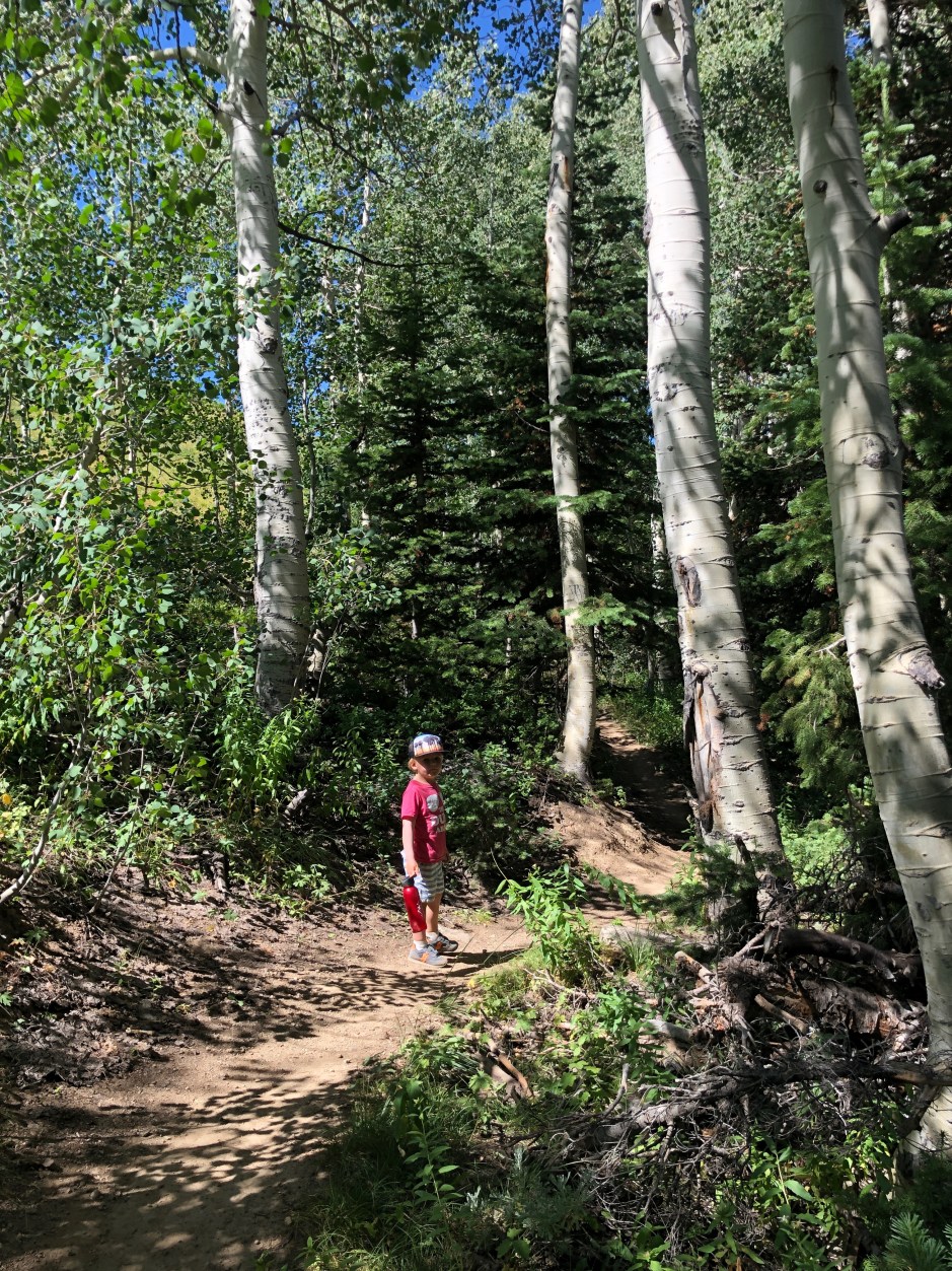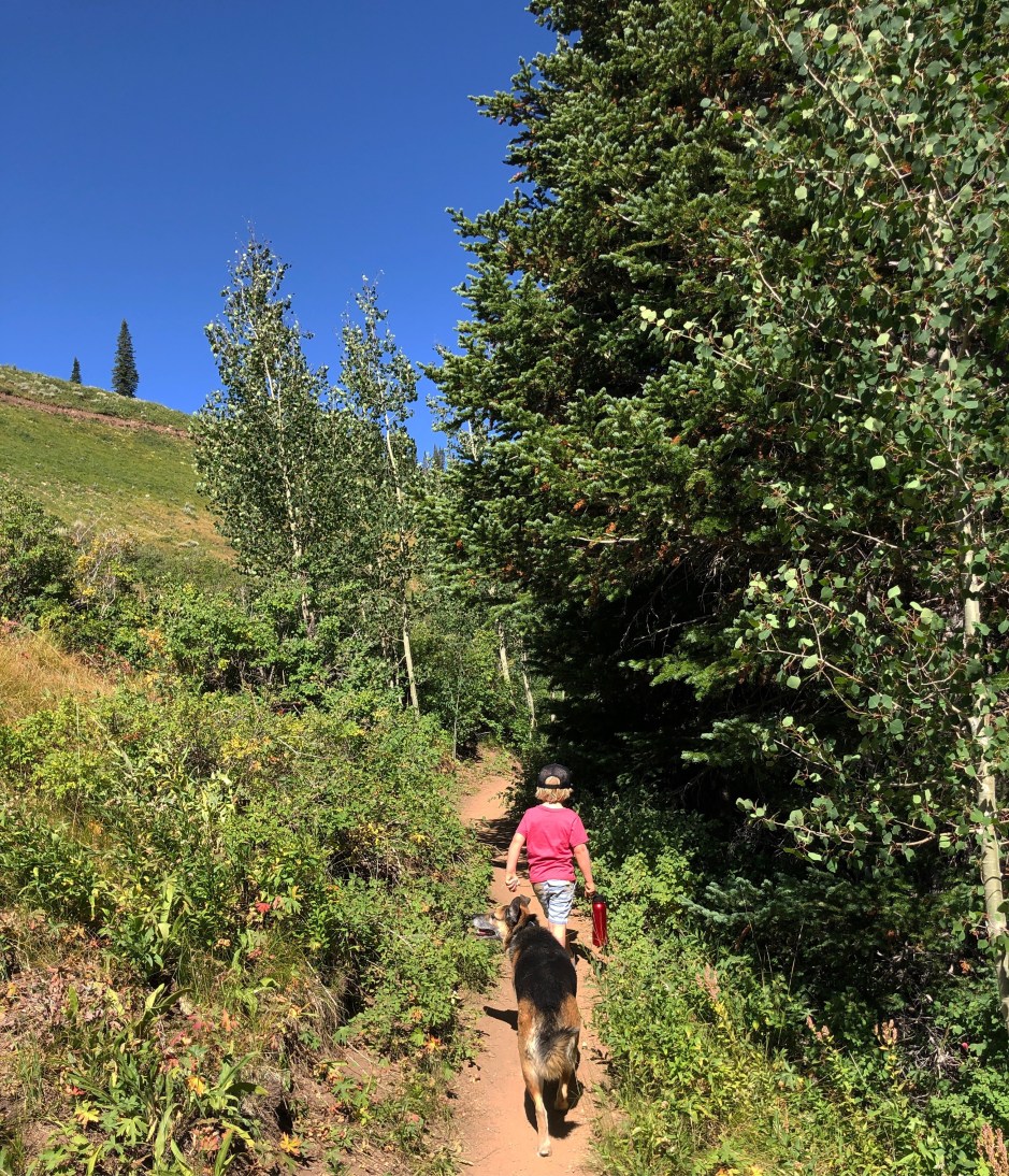 I’m overdue to share our Summer Bucket List recap, but one of the items on it was “go on a hike.” One afternoon, we packed up the boys and Cholula and headed for a mellow trail. Morrison took a ride with me in the baby carrier, Cholula wagged her way all over the hillside, and Oden blazed the trail for us. We discovered that he loves hiking. How do we know? He wouldn’t stop telling us how much he loved it! He was in awe of the tall trees, the wildflowers, the view. He’d stop and examine each spiderweb. He’d get ridiculously excited to find a new flower or a pinecone. He’d say, “I can see forever!” Not many things would make this mountain mama’s heart glow more than hearing her 3-year-old say, “I love hiking in the woods!”