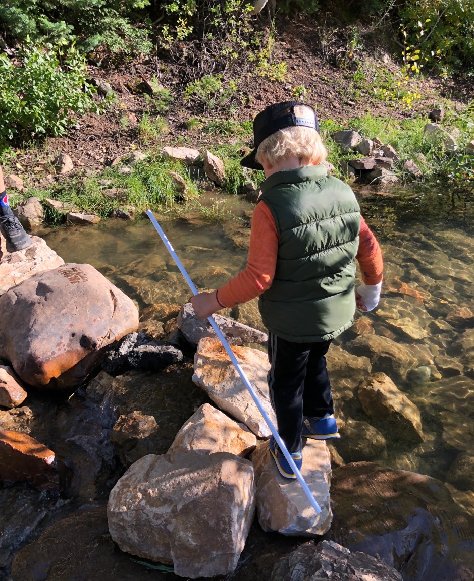 The list was such a fun way to expand Oden’s perspective a little bit and really look at his surroundings. We had to talk him into turning around to head home- he wanted to keep following the trail. He got so into gathering items and made John carry a doggy bag around so he could save his discoveries! It was fun to talk about different textures, shapes, sounds, and colors. Nature is a fabulous classroom.