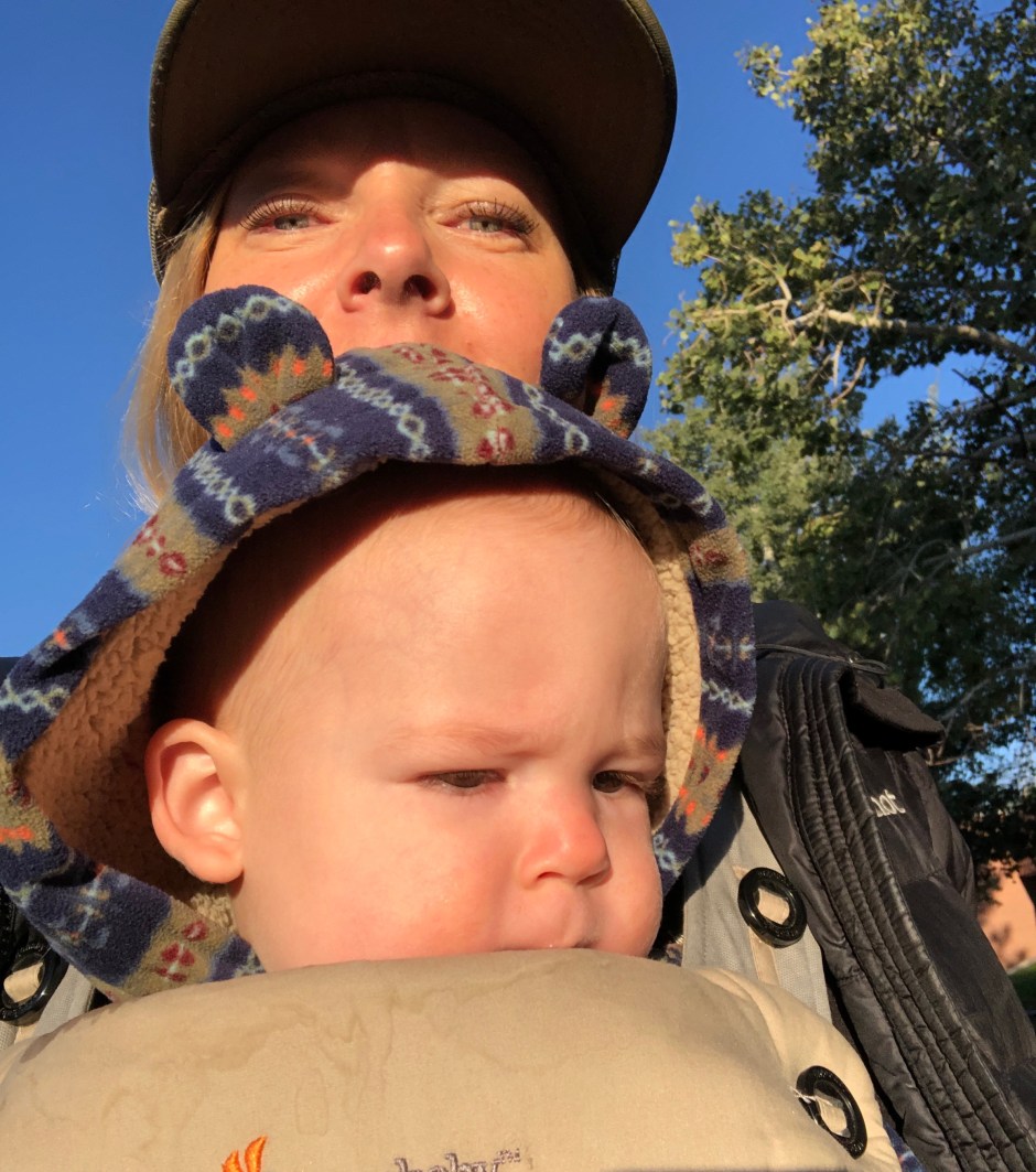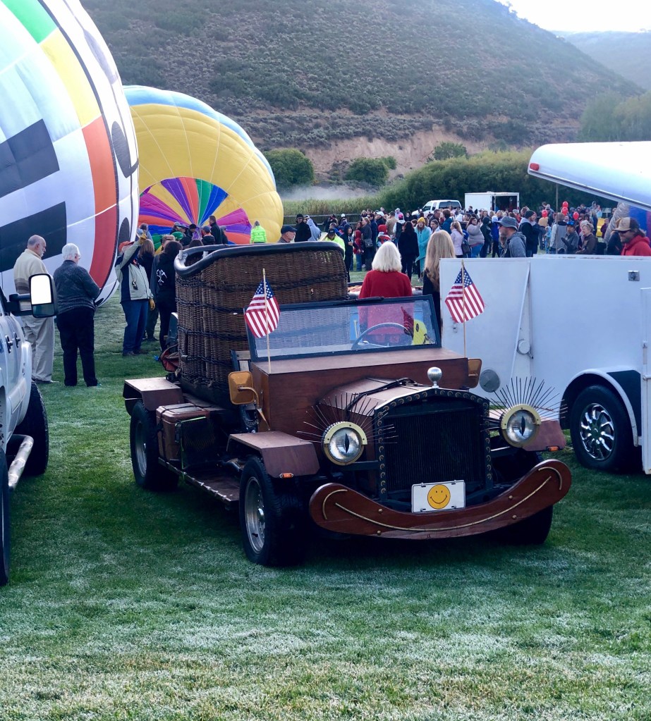 One by one, the balloons inflated and took off. Music was playing and we found a smaller version of a balloon for Oden’s wrist. The whole town seemed to turn out for the event. The sun finally creeped over the hill and started warming us up a bit and the clear blue sky was dotted with a rainbow of color. My favorite balloon was yellow with flowers. Some had a shape, like a frog or an owl. I could have watched them all day. I wonder what was going through Morrison’s little mind!